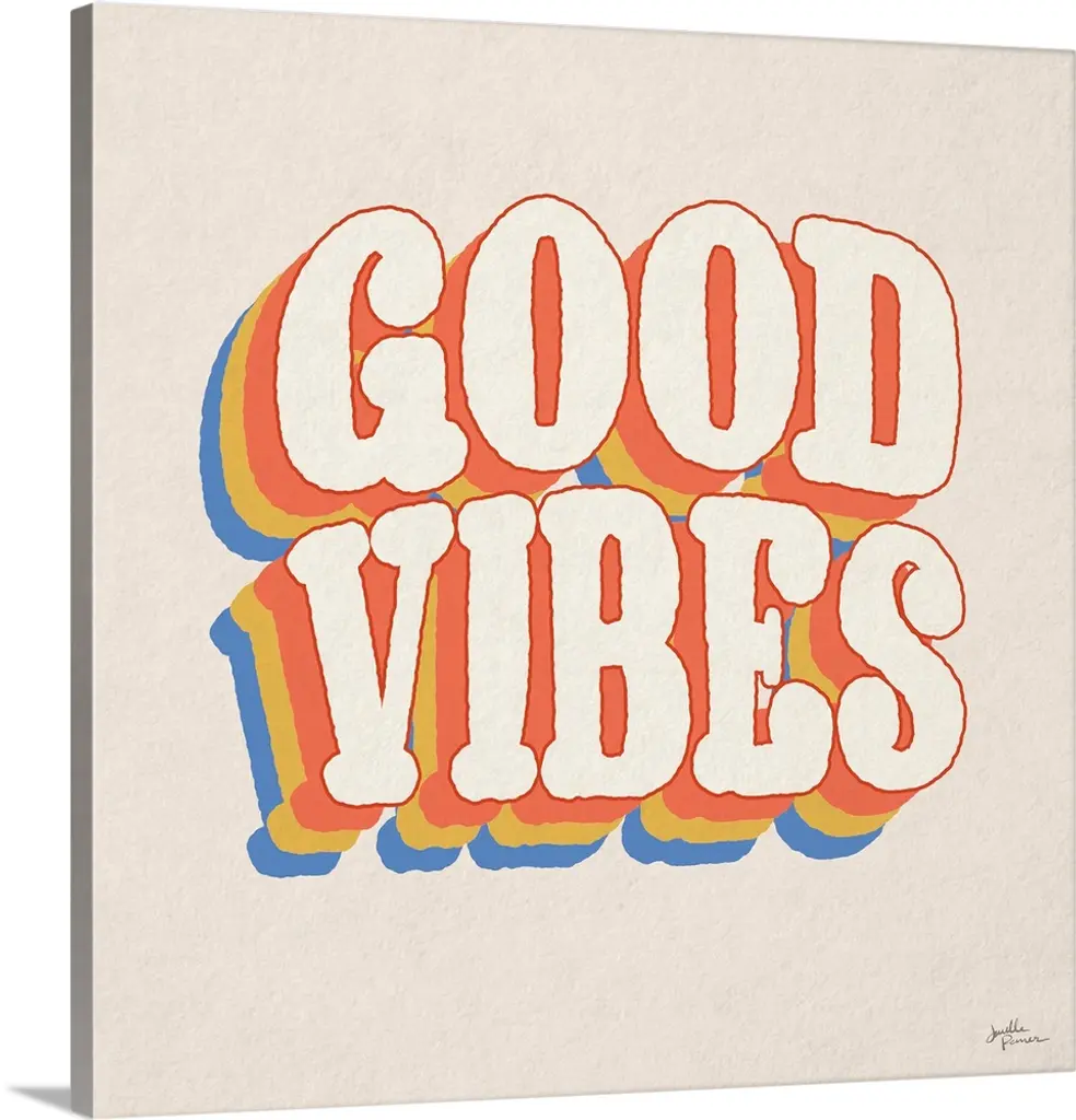 Good Vibes Neon Typography Stretched Canvas Wall Art, 24x30