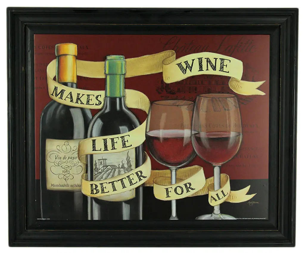 Add an air of fashion to your room and rejuvenate the space with this good wine 1 black framed print wall art. This print is a visual artistic expression that allows you to decorate your space in style. Reproduced for you on paper, this hanging decorative accent will be a trendy and fashionable way to dress your walls. Hang on your wall to add some up to date fashion and decoration. Utilize this opportunity to create a focal point in the room with this fabulous wall decor option. 20" H x 14" W x 1" D