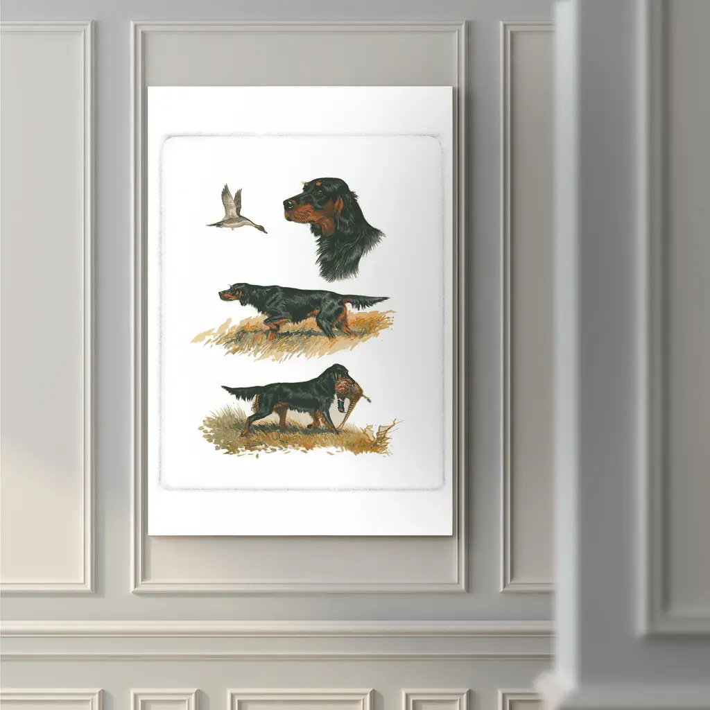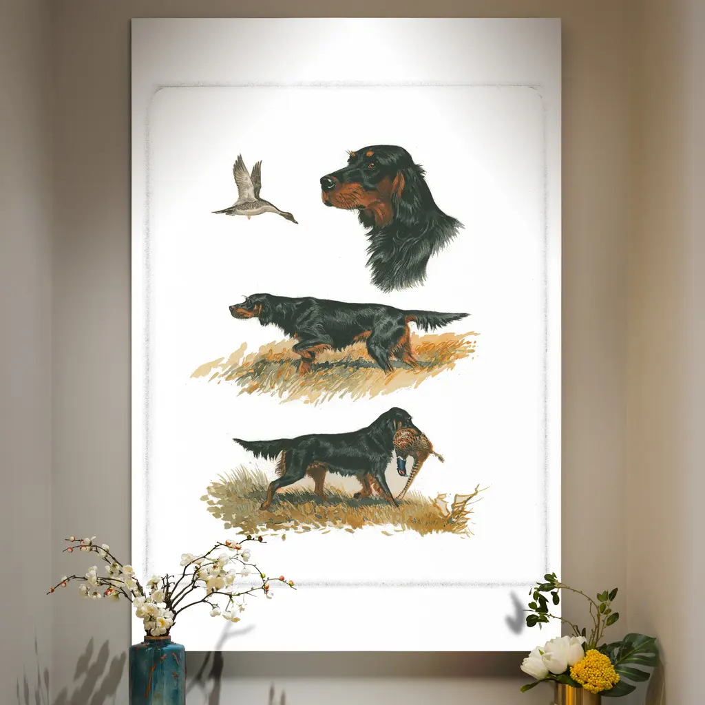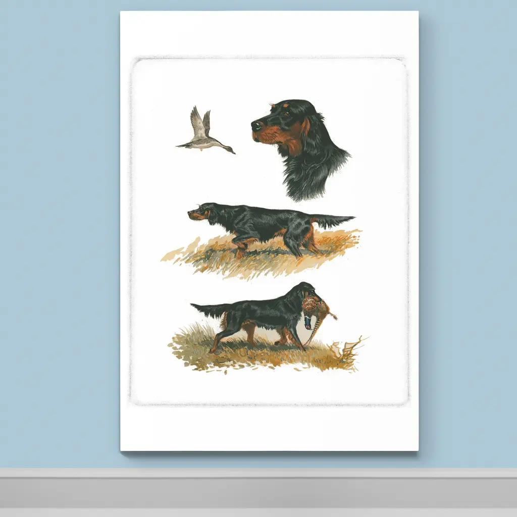 Gordon Setter -Premium Gallery Wrapped Canvas - Ready to Hang A premium hand stretched gallery wrapped canvas print created to last. Featuring a beveled a solid wood stretcher bar, each piece comes ready to hand 5 SIZES AVAILABLE 8''X12'' - Overall Size 16''x20'' - Overall Size 18''x27'' - Overall Size 24''x36'' - Overall Size 32''x48'' - Overall Size Each piece is made to order. Built to Last Each piece comes ready to hang Solid wood stretcher Fade and Water resistant Made domestically