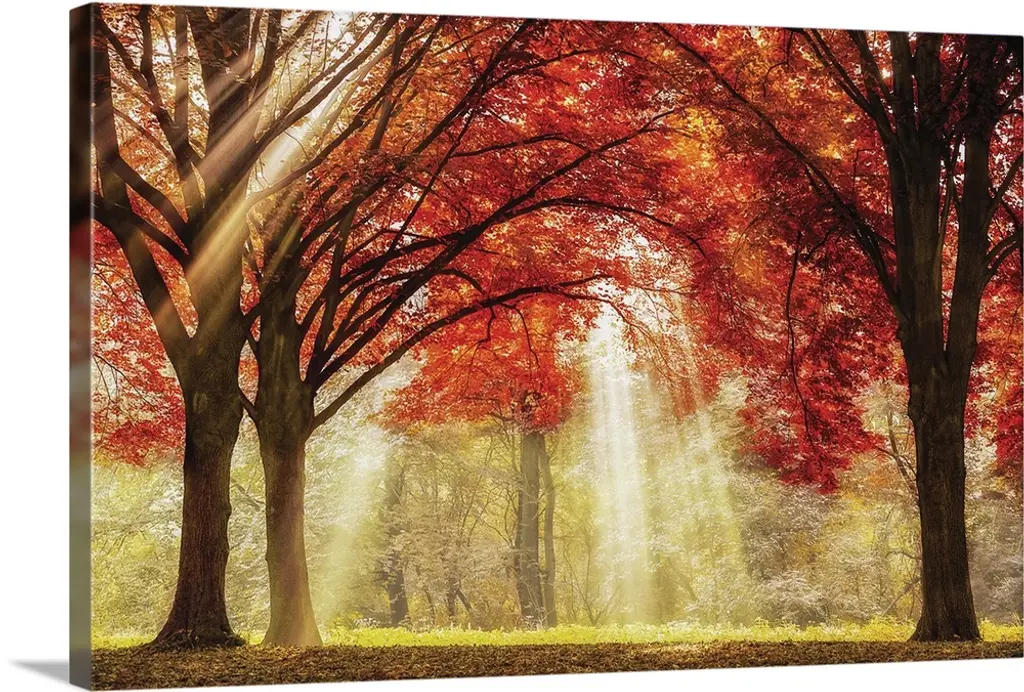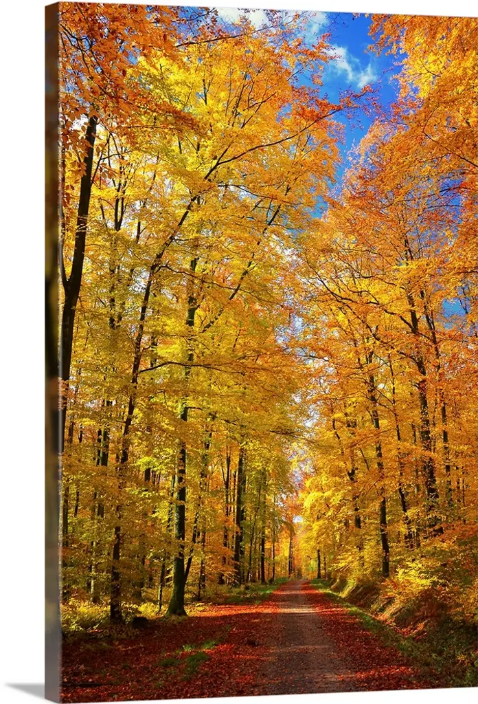 The Gorgeous Autumn of Sunny Forest canvas art print is sure to make an impression on anyone who sees it. This artwork is gallery wrapped around a 1-inch solid wood frame and arrives carefully packaged and entirely ready to hang on the wall. Design Art only uses the highest resolution and pigments to ensure a crisp colorful print that is never faded or pixelated. This artwork is sure to be a conversation starter in any home or office.