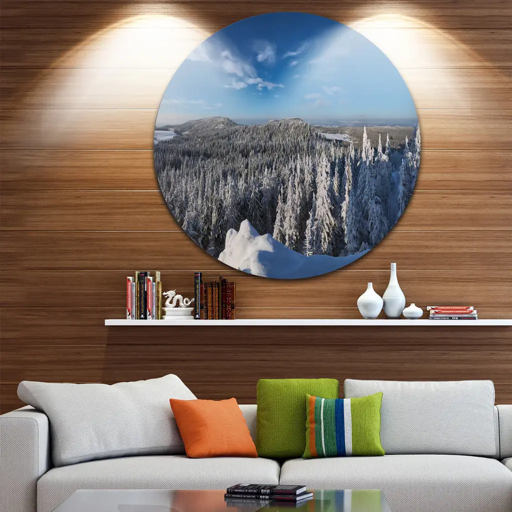 Bring Contemporary Abstraction to your home with this large Circle Metal wall art. This Gory Stolowe from Szczeliniec Mountains Metal Artwork makes it the focal point of any room or office. - White Gloss Coating ensures colors are extra vibrant with light reflection.- Aluminum grade Sheet Metal with 1 inch mounting frame on the back giving the illusion that the artwork is floating on the wall..- Mounting Brackets are included along with instructions.- High Quality Digital images are created directly into a glossy aluminum panel producing a stunning and captivating print into the glossy finish of the metal.- Water, Fire and Scratch resistant HD Aluminum panels.- Looks better than any photo paper and guaranteed to last at least 20 years- Easy to clean with a microfiber cloth. Colors are far superior to regular Canvas Art. - Easy to Hang