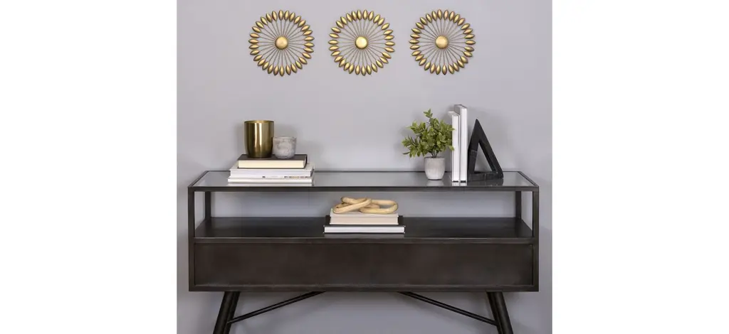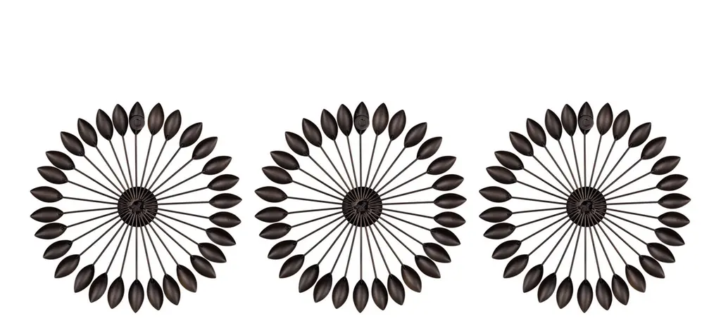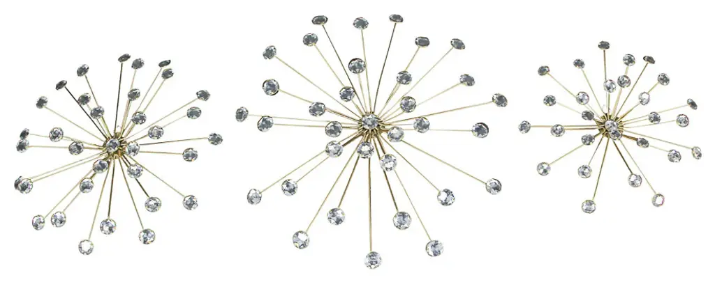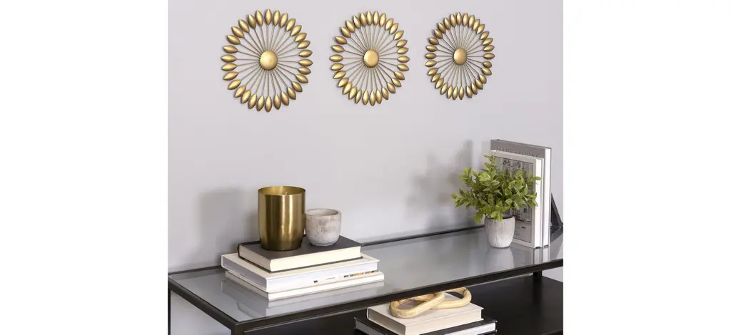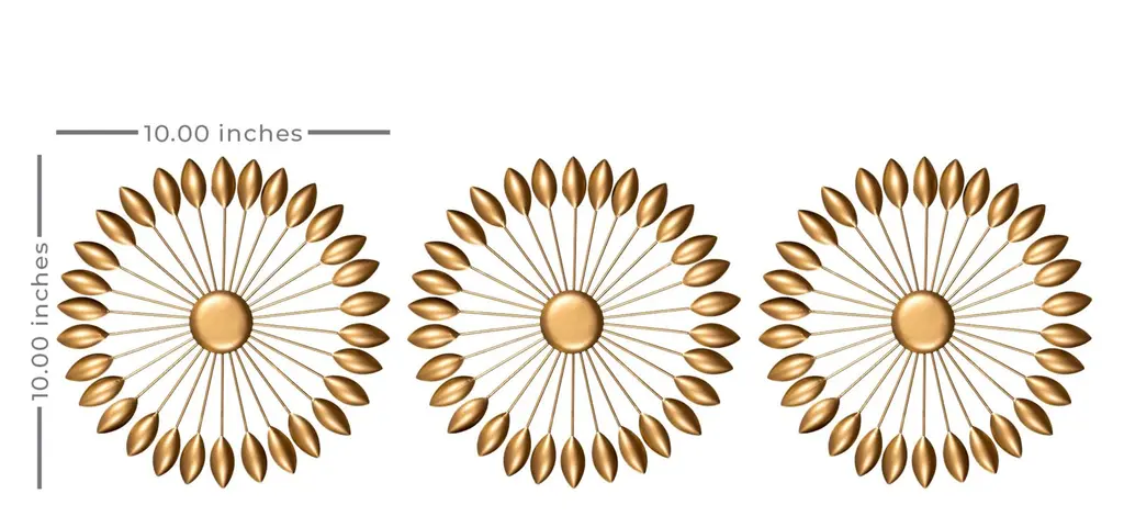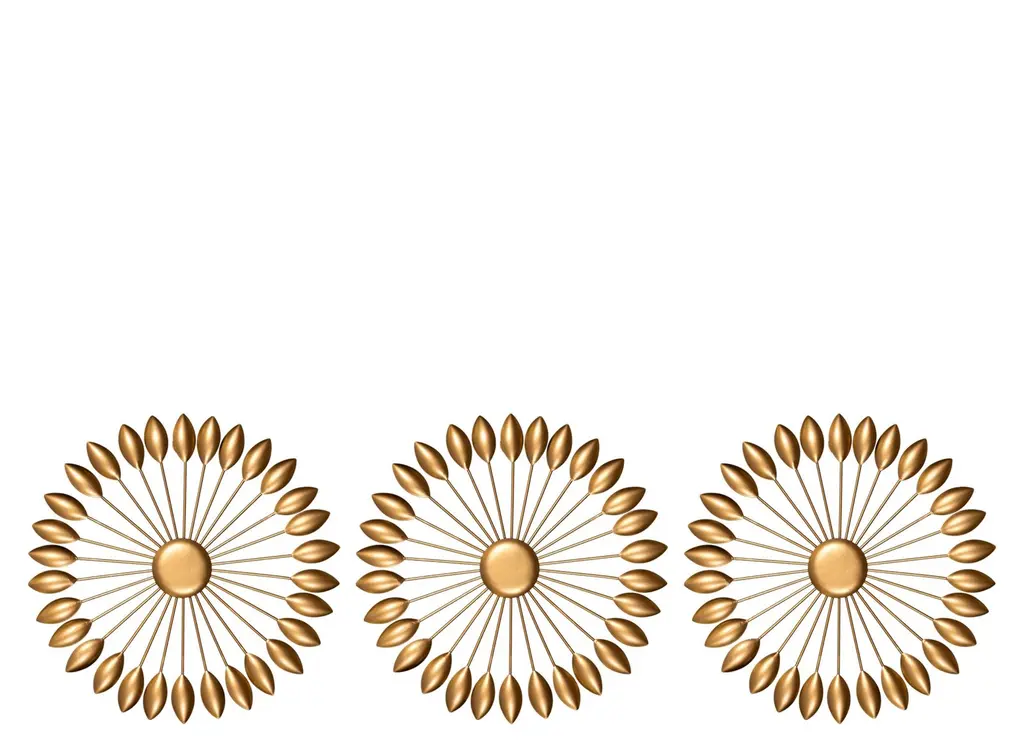 Highlight your love for modern art pieces with this three piece Burst wall decor set. The starburst-inspired design stands out on any wall thanks to the shiny satin gold finish, smooth medallions in the center, and leaf-like tips on the edges for accent.