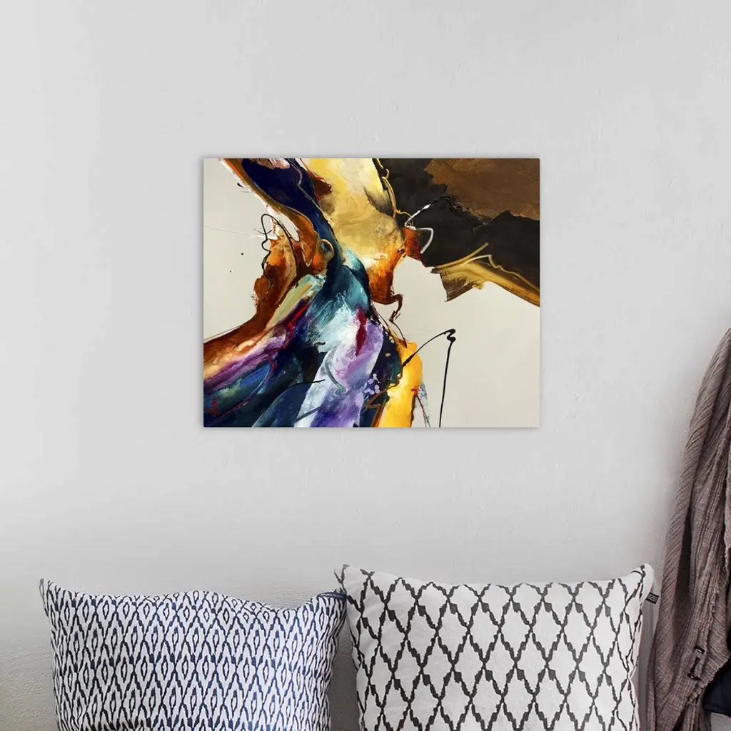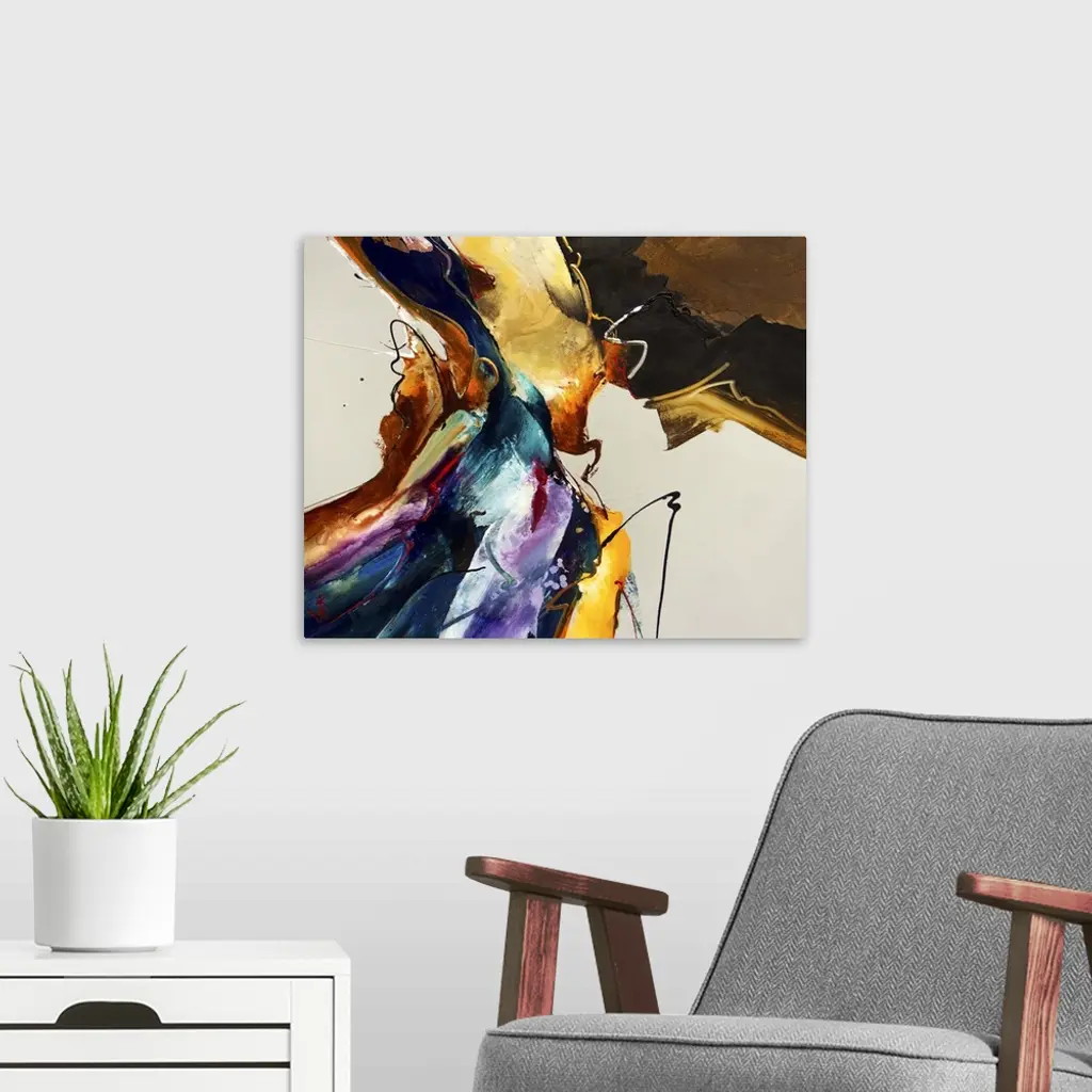 Contemporary abstract painting using wild and vivid colors to create movement and depth.