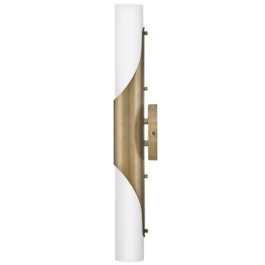 The Grace LED Vanity Light from Hinkley embodies simplicity and elegance, living up to its perfectly fitting name. This fixture showcases a beautifully modern silhouette, accentuated by a bias-cut central cuff, exuding a feminine and timeless aesthetic that seamlessly complements any decor style. The smooth etched opal glass introduces contrast and subtle detailing, adding a touch of sophistication to the overall design. Grace becomes a statement of refined beauty, creating an ambiance of understated elegance with its captivating form and versatile appeal.