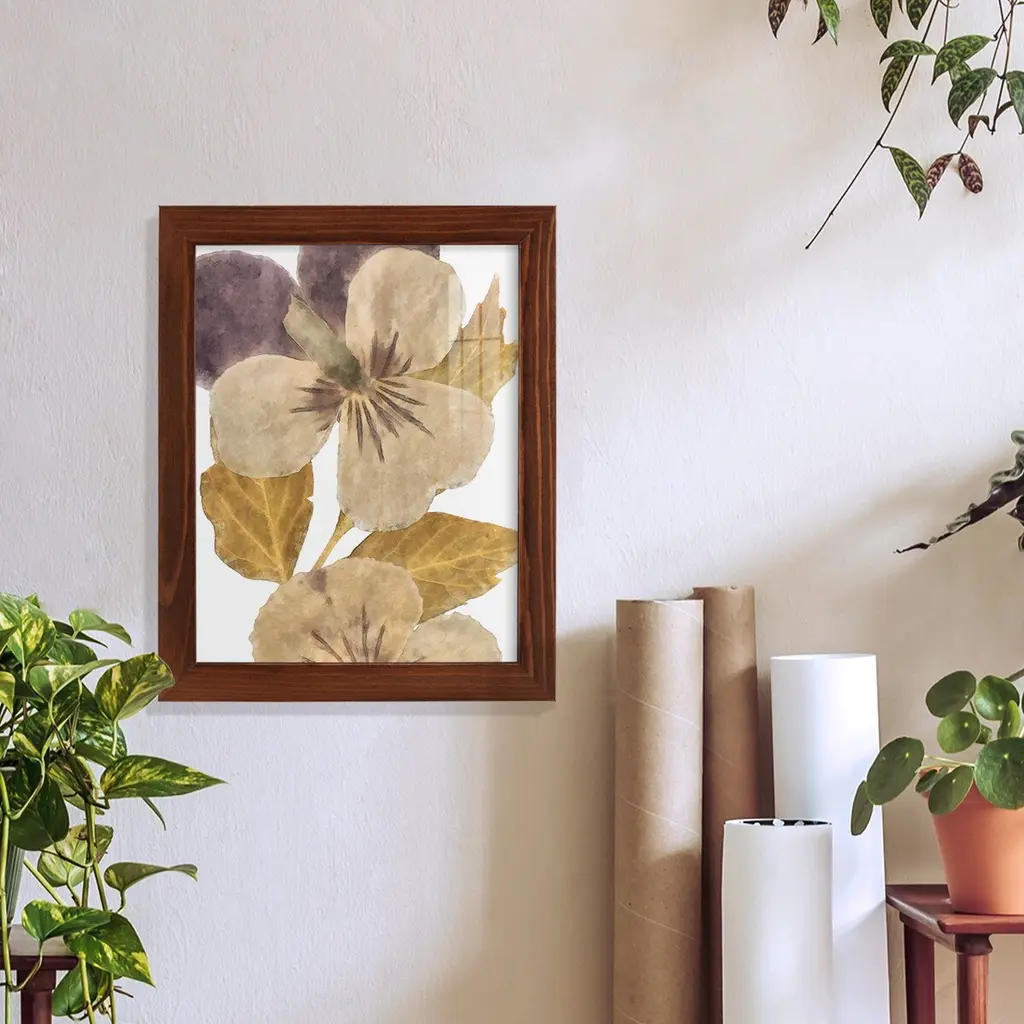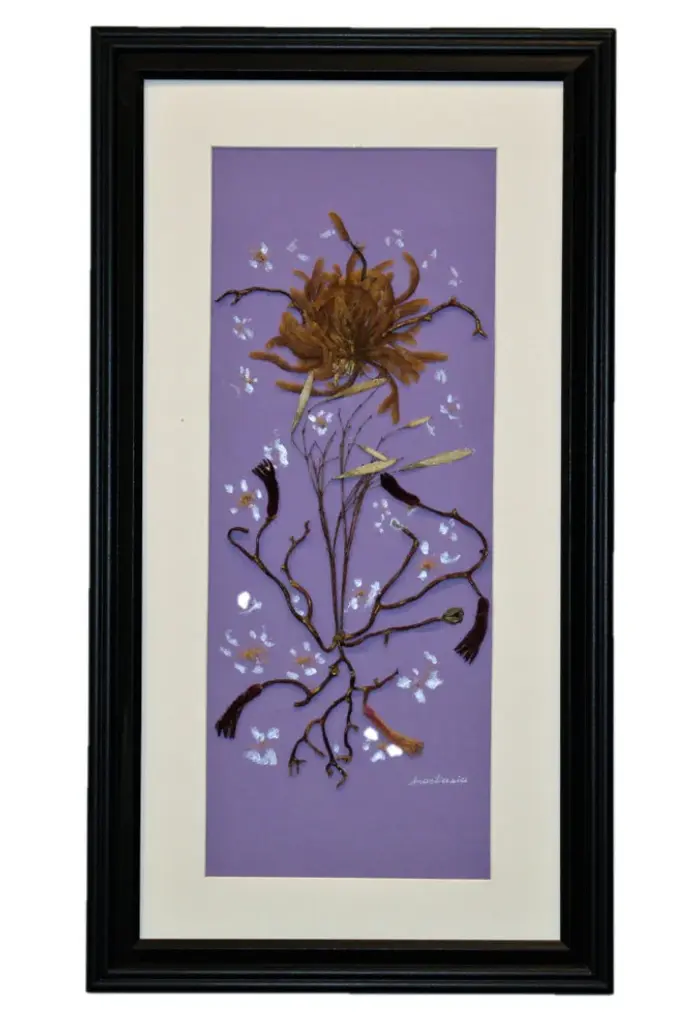 • Oshibana (pressed plants) artwork in a 16" x 20" silver metal frame.• The pressed leaves and flowers are shown in their natural colors and beauty