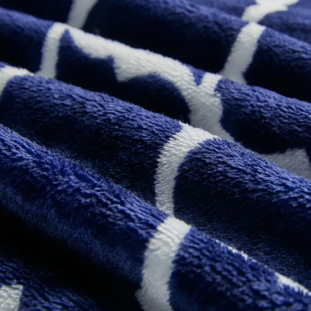 Gracie Mills Graig Modern Ogee Print Microlight Oversized Plush Throw Blanket - Throw - Navy