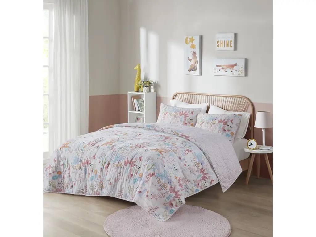 Gracie Mills Illyria Reversible Animals Print Cotton Comforter Set - Full/queen - Blush