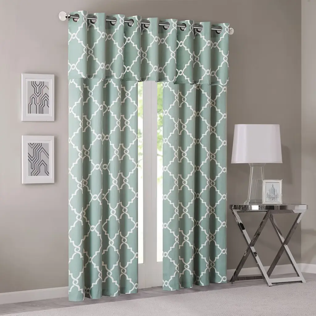 Gracie Mills Ondine Contemporary Grommet Top Valance With Fretwork Print - One Size - Seafoam