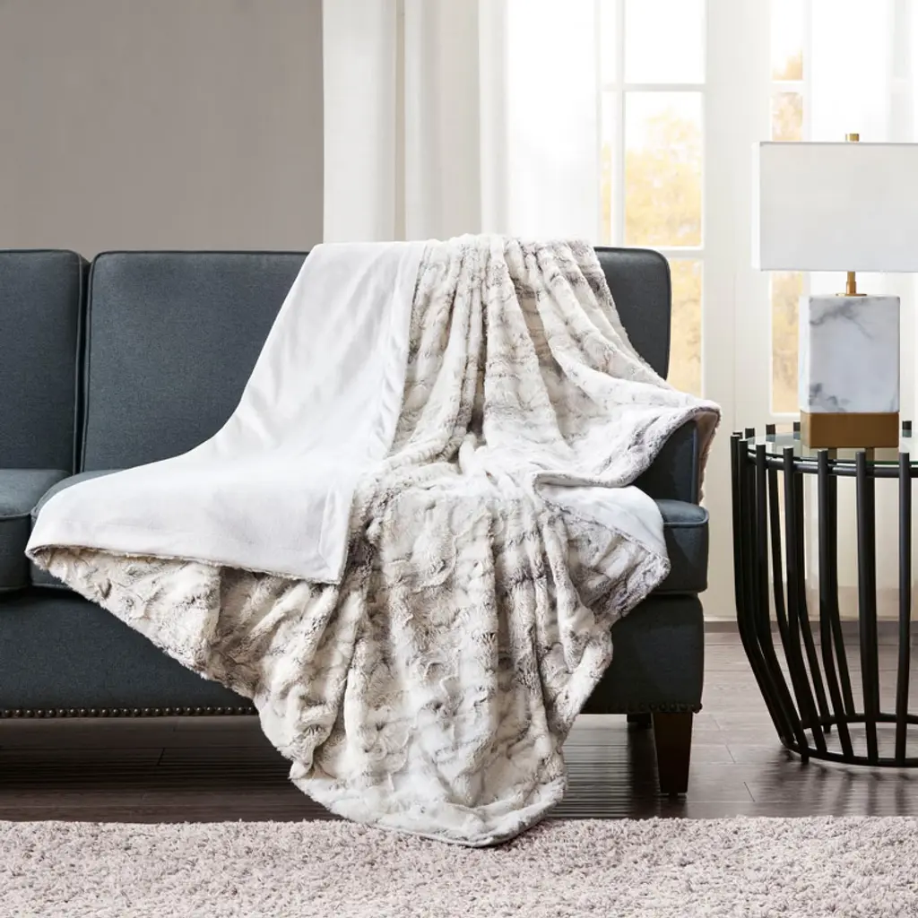Gracie Mills Porfirio Oversized Marble Print Faux Fur Throw Blanket - Throw - Natural