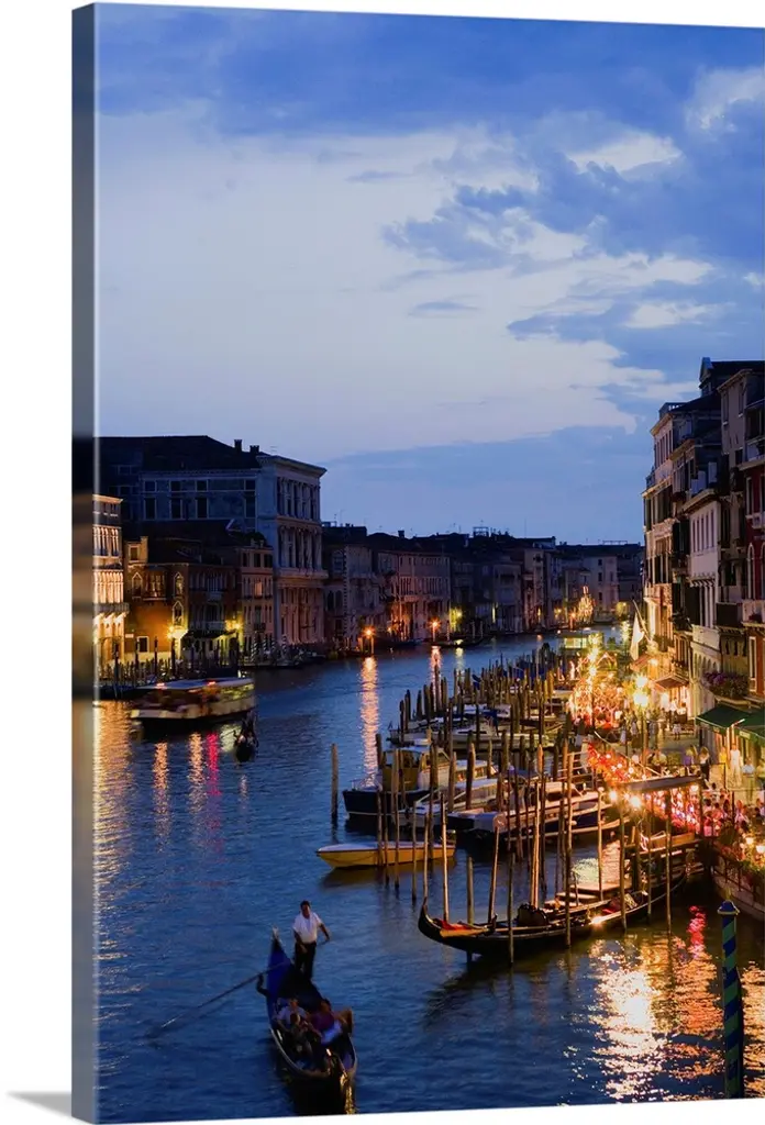 "Grand Canal At Night Venice" Photo Metal Wall Art, 3 Panels, 36"x28"