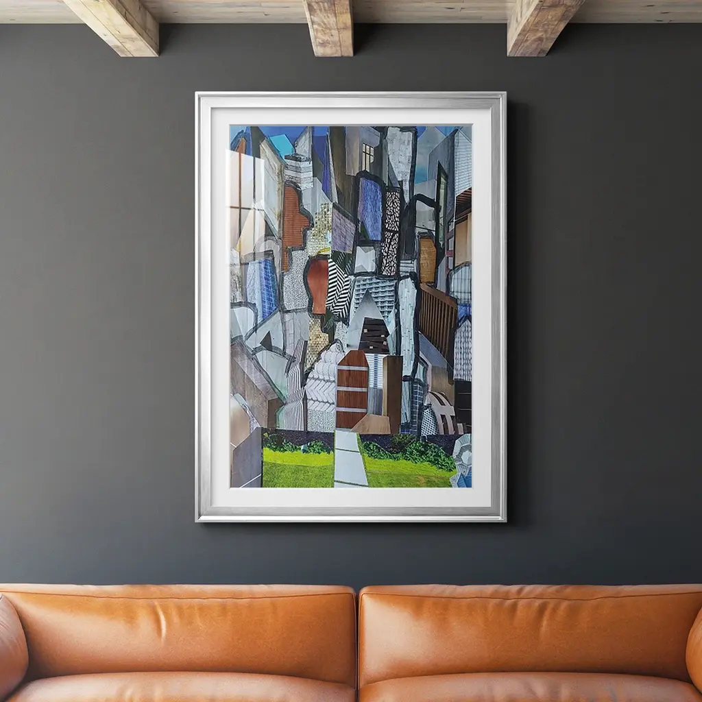 Transform your space with this archival digital print on paper, expertly framed in black wood and matted under glass. Artist: Andy Burgess Overall, approx. 32"W x 2.13"D x 25"T Print size, approx. 24"W x 17"T Wire on the back for easy hanging Hangs horizontally Includes hanging hardware Wipe clean Weight, 10.9 lbs Made in USA Boxed weight, approximately 15.86 lbs About the Artist: London-born artist Andy Burgess, based in Tucson, Arizona, creates modernist and mid-century architecture renditions, panoramic cityscapes, and mosaic collages from vintage papers and ephemera. Burgess explores the genesis of modern architecture in Europe and the us and its relationship to modern art, design, and abstract painting. He also creates collages from 1930s-50s American ephemera, deconstructing and reconstructing them into pop art pieces and cityscapes. Burgess continuously broadens his artistic skills by mastering various media, including photography and printmaking. Shipping Direct from Vendor, usually ships within 28 business days. undefined