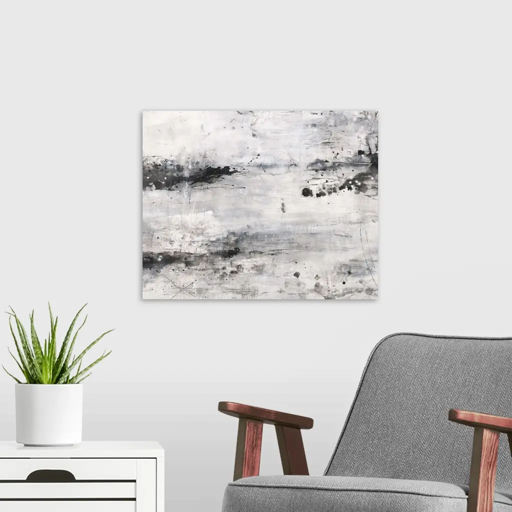 Contemporary abstract painting using gray tones.