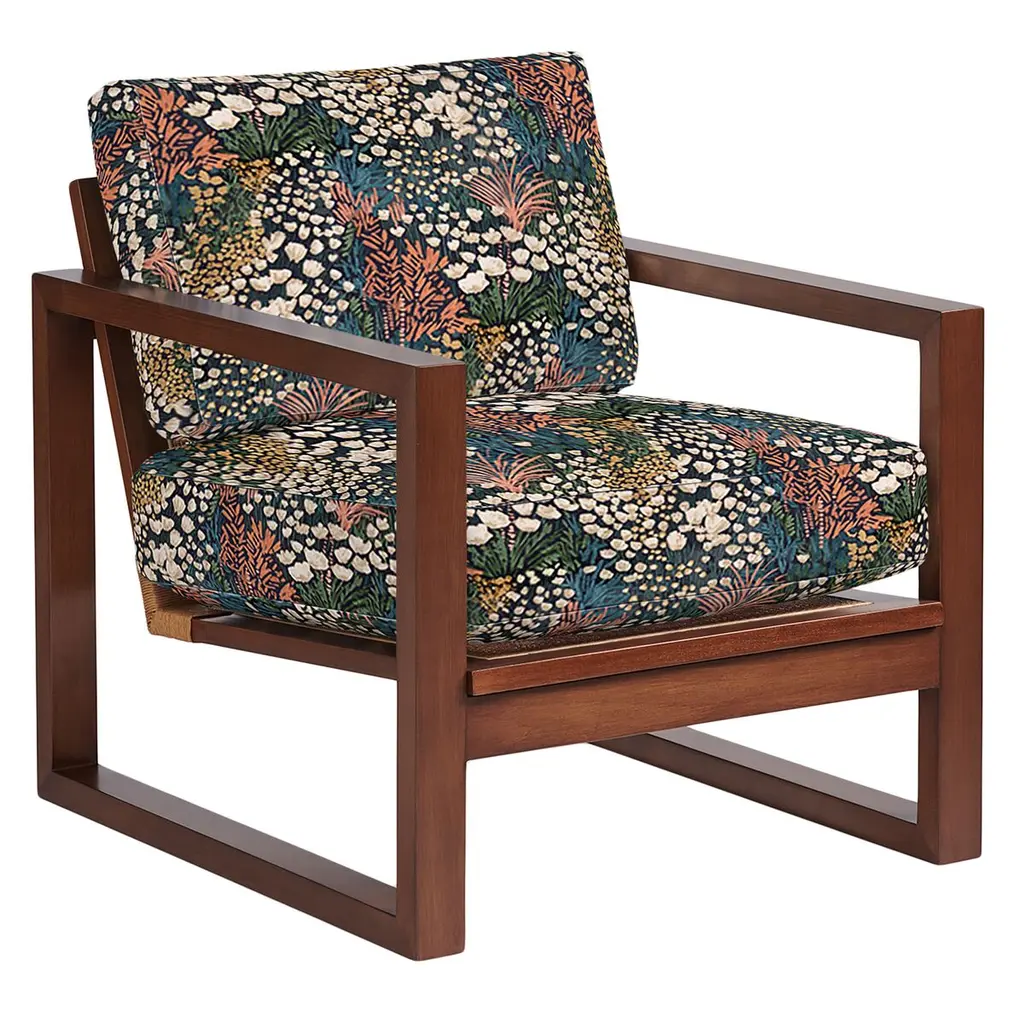 Grant Exposed Wood Chair, Leyland Sky Block Print