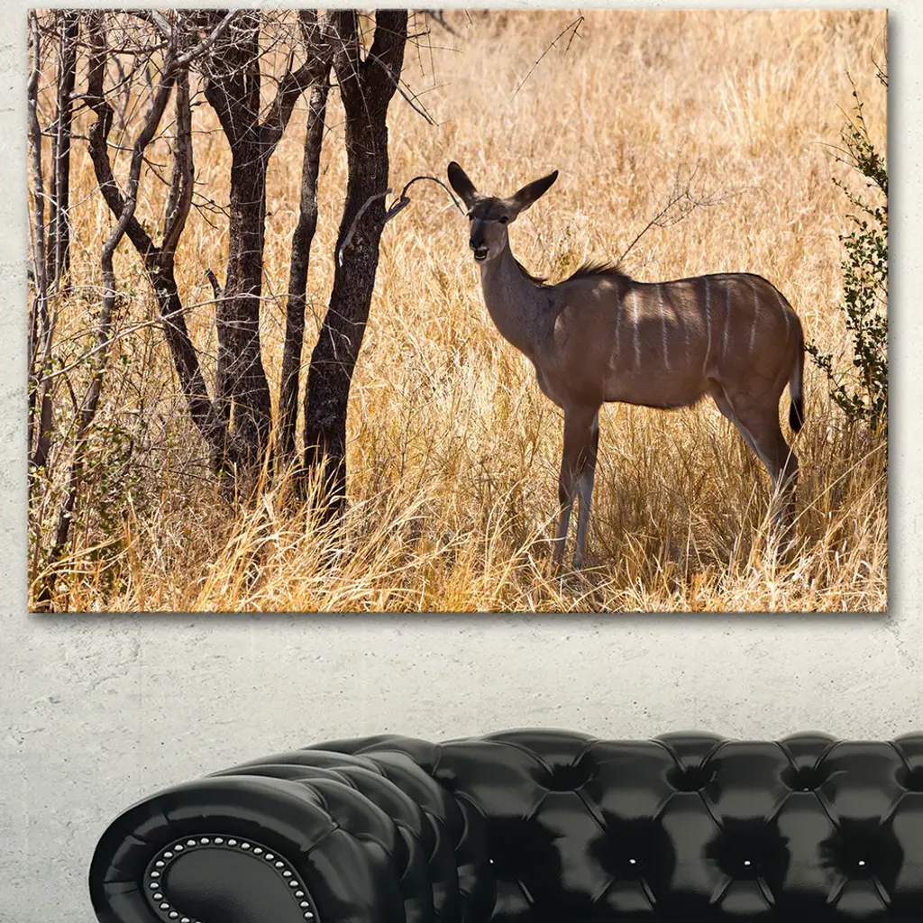 Grants Gazelle Standing In Long Grass, Animal Canvas Art Print, 60"x28"