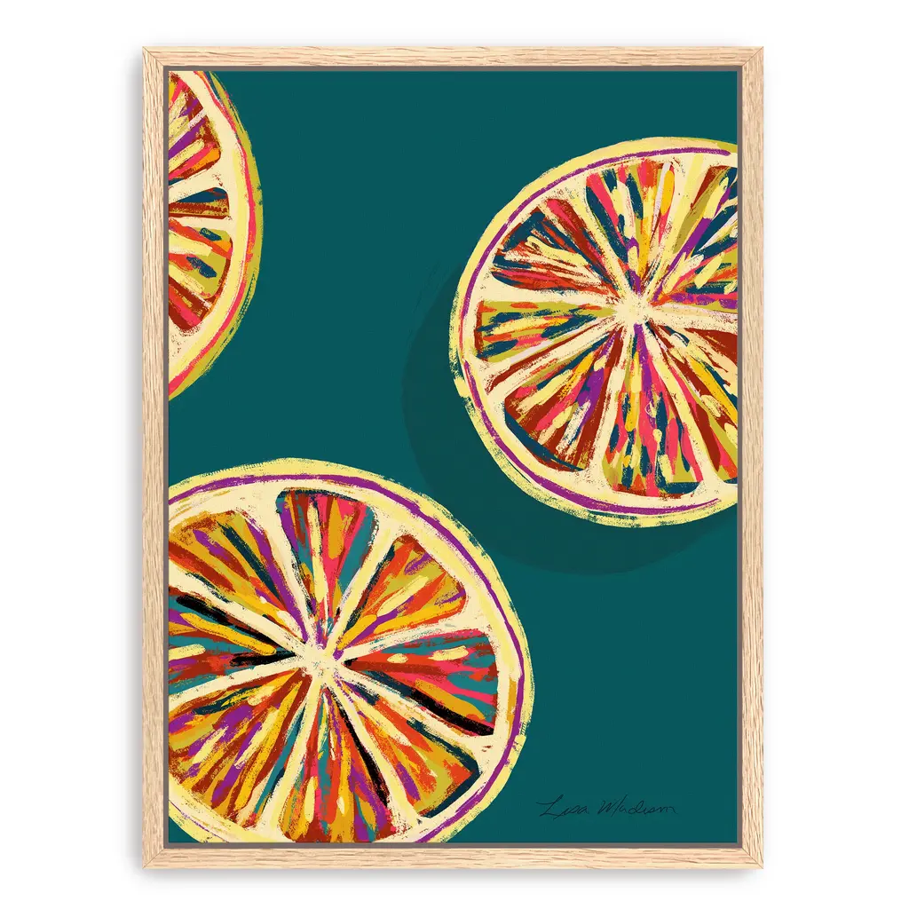Add a burst of sunshine to your space with this vibrant citrus-inspired canvas, featuring abstract orange slices in juicy shades of red, pink, and gold against a cool teal backdrop. Perfect for kitchens, dining areas, or creative corners, this modern fruit wall art brings playful energy and artistic flair to any room Our Gallery Wrap Canvas Prints are proudly assembled with high quality materials in California, USA. Each piece is printed on a thick, archival grade canvas using Giclee technology. It is then hand-stretched by our experienced artisans over solid wood bars, which will not warp over time. The final product is a piece personally crafted for you to confidently display on your wall. Care and Assembly: Ensure that the location of your piece has little to no exposure to heat, sunlight, and moisture. Wipe clean, only if needed. Each piece includes hanging hardware to hang on your wall vertically.