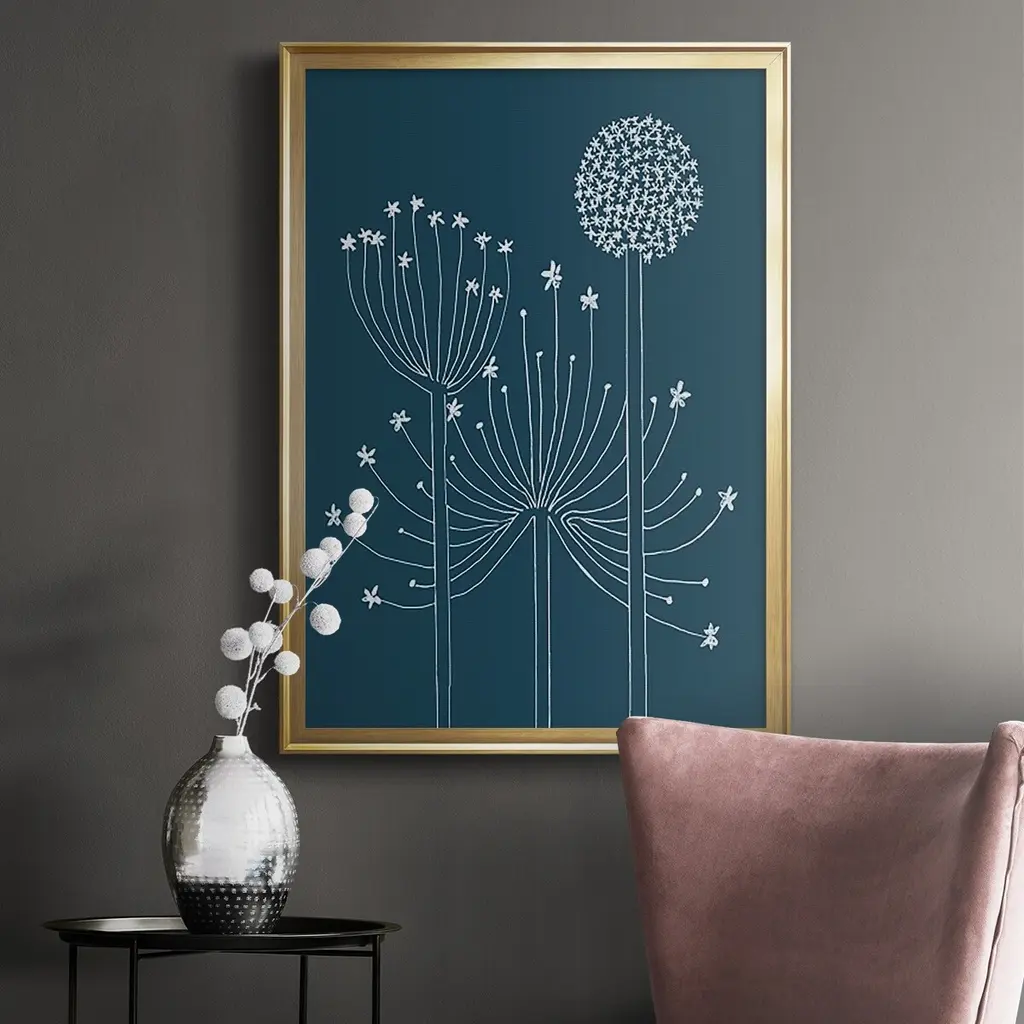 Graphic Alliums II Premium Framed Print - Ready to Hang A Premium Framed Print created to last. Framed in distressed wood and available in an array of sizes and colors Featuring a beveled a solid wood stretcher bar, each piece comes ready to hand 4 SIZES AVAILABLE 30.5''X42.5'' - Overall Size 26.5'X36.5'' - Overall Size 22.5''x30.5'' - Overall Size 18.5''x24.5'' - Overall Size Each piece is made to order. Each piece comes with hanging hardware. Made in the USA Ready to Hang