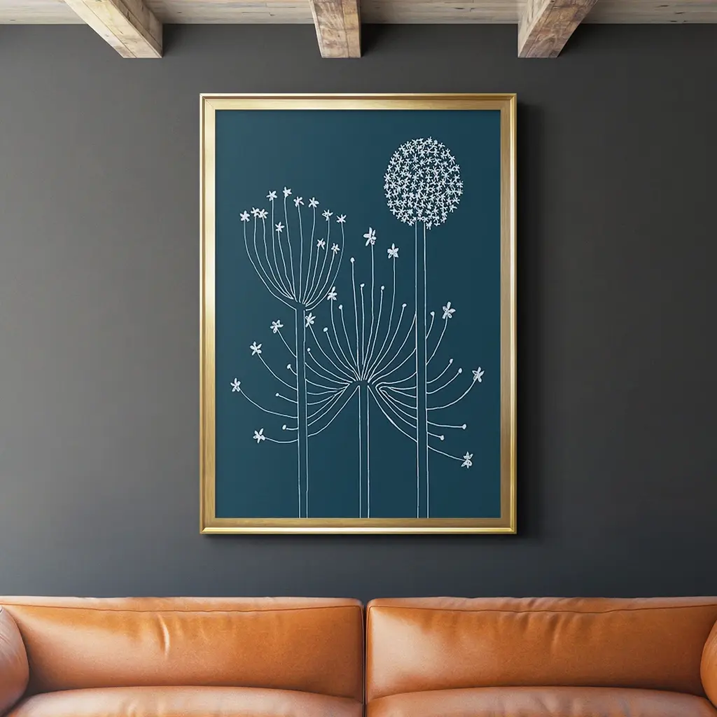 Graphic Alliums II Premium Framed Print - Ready to Hang A Premium Framed Print created to last. Framed in distressed wood and available in an array of sizes and colors Featuring a beveled a solid wood stretcher bar, each piece comes ready to hand 4 SIZES AVAILABLE 30.5''X42.5'' - Overall Size 26.5'X36.5'' - Overall Size 22.5''x30.5'' - Overall Size 18.5''x24.5'' - Overall Size Each piece is made to order. Each piece comes with hanging hardware. Made in the USA Ready to Hang