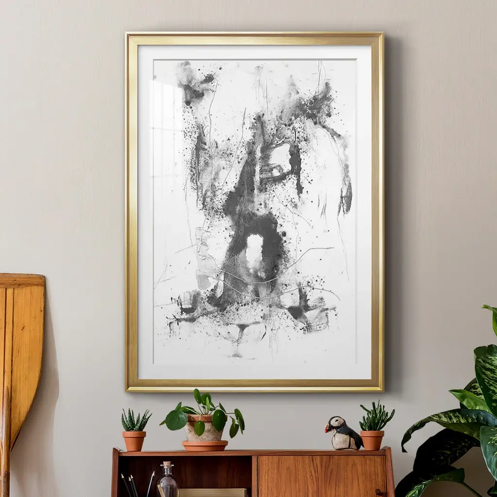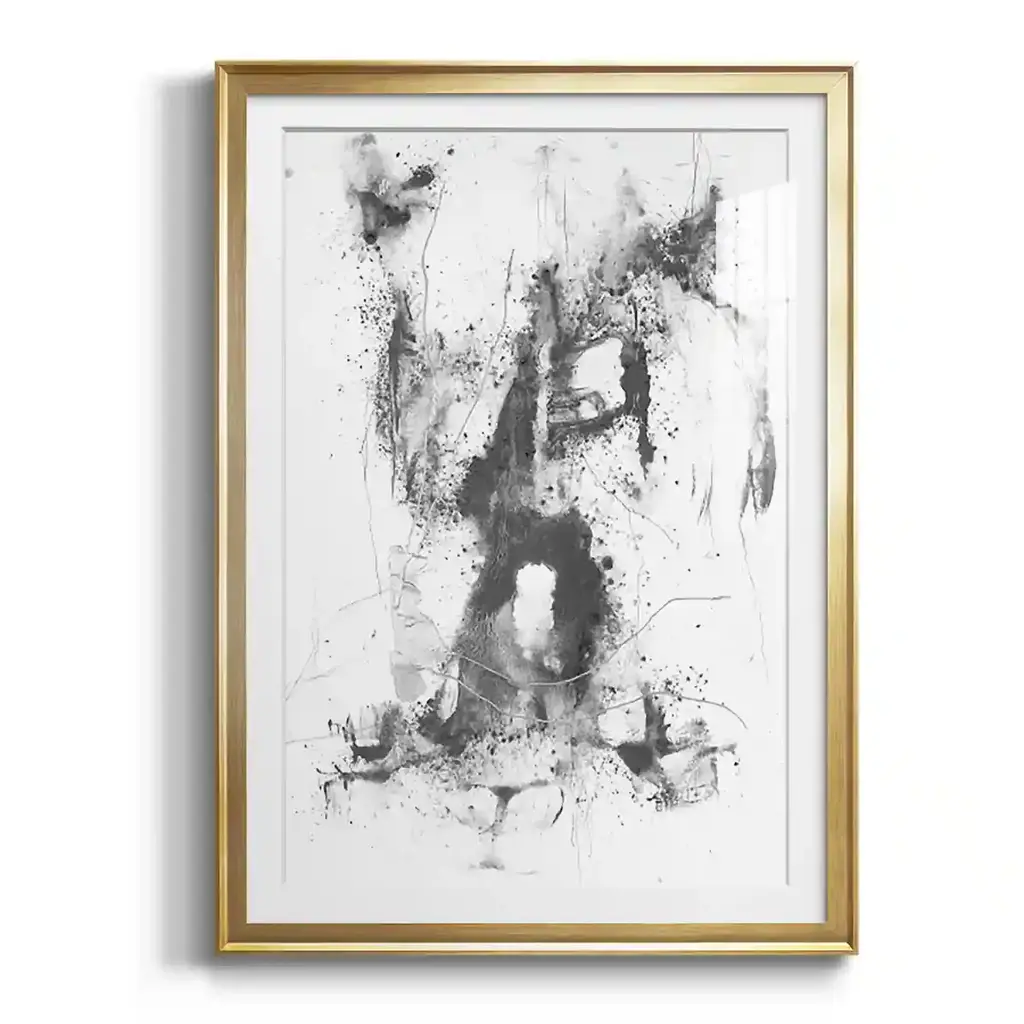 Graphite Abstract II Premium Framed Print - Ready to Hang A Premium Framed Print created to last. Framed in distressed wood and available in an array of sizes and colors Featuring a beveled a solid wood stretcher bar, each piece comes ready to hand 4 SIZES AVAILABLE 30.5''X42.5'' - Overall Size 26.5'X36.5'' - Overall Size 22.5''x30.5'' - Overall Size 18.5''x24.5'' - Overall Size Each piece is made to order. Each piece comes with hanging hardware. Made in the USA Ready to Hang Giclee Paper Print Acrylic Glass Beveled Matt Board
