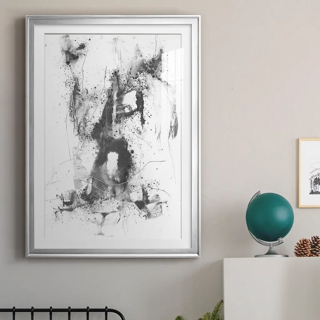Graphite Abstract II Premium Framed Print - Ready to Hang A Premium Framed Print created to last. Framed in distressed wood and available in an array of sizes and colors Featuring a beveled a solid wood stretcher bar, each piece comes ready to hand 4 SIZES AVAILABLE 30.5''X42.5'' - Overall Size 26.5'X36.5'' - Overall Size 22.5''x30.5'' - Overall Size 18.5''x24.5'' - Overall Size Each piece is made to order. Each piece comes with hanging hardware. Made in the USA Ready to Hang Giclee Paper Print Acrylic Glass Beveled Matt Board
