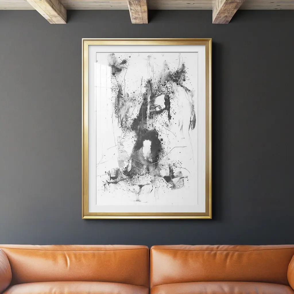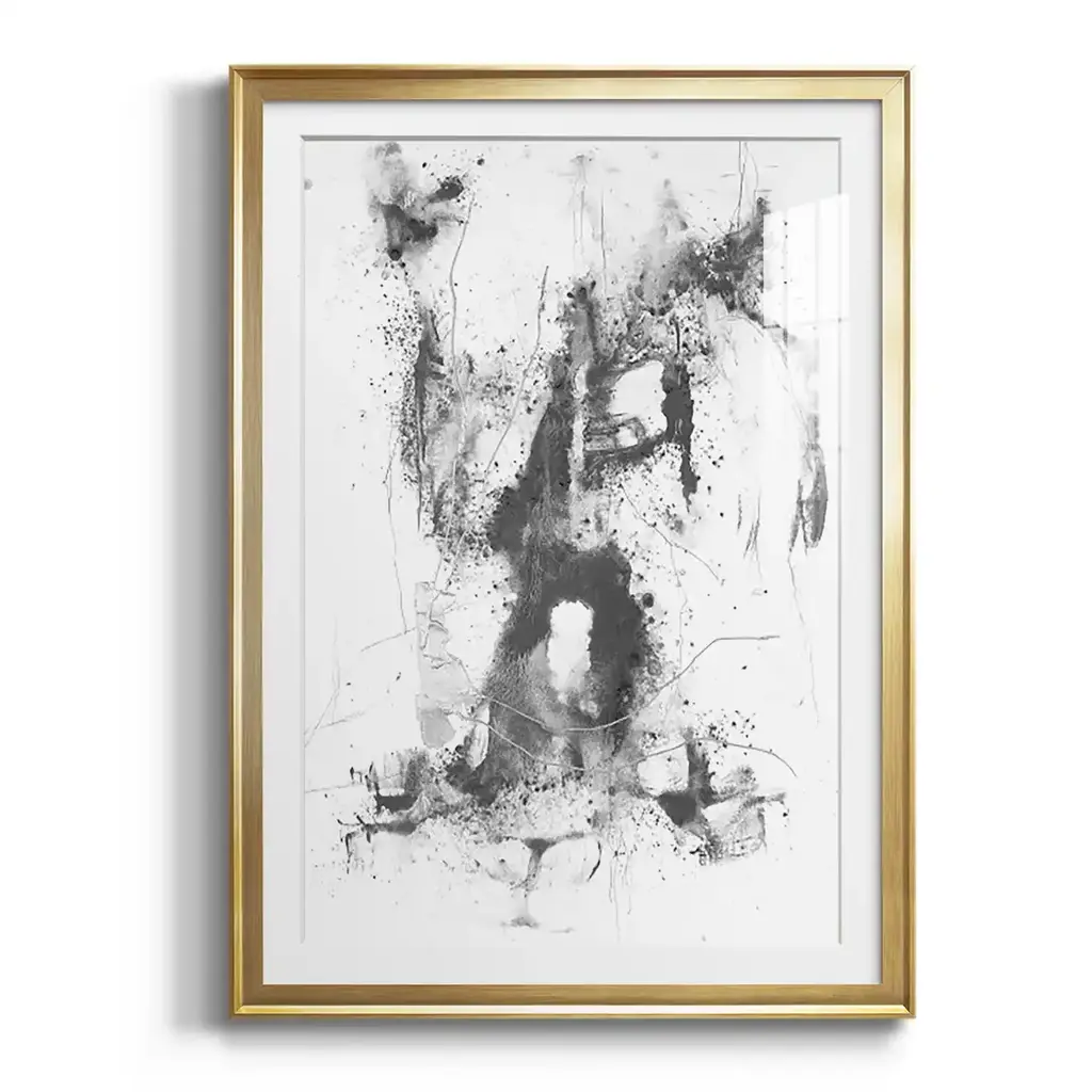 Graphite Abstract II Premium Framed Print - Ready to Hang A Premium Framed Print created to last. Framed in distressed wood and available in an array of sizes and colors Featuring a beveled a solid wood stretcher bar, each piece comes ready to hand 4 SIZES AVAILABLE 30.5''X42.5'' - Overall Size 26.5'X36.5'' - Overall Size 22.5''x30.5'' - Overall Size 18.5''x24.5'' - Overall Size Each piece is made to order. Each piece comes with hanging hardware. Made in the USA Ready to Hang Giclee Paper Print Acrylic Glass Beveled Matt Board