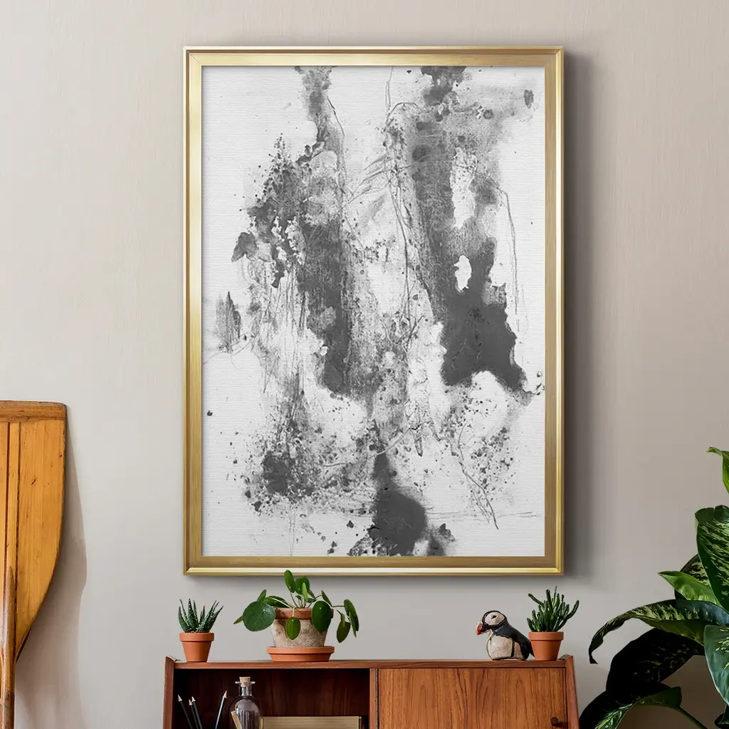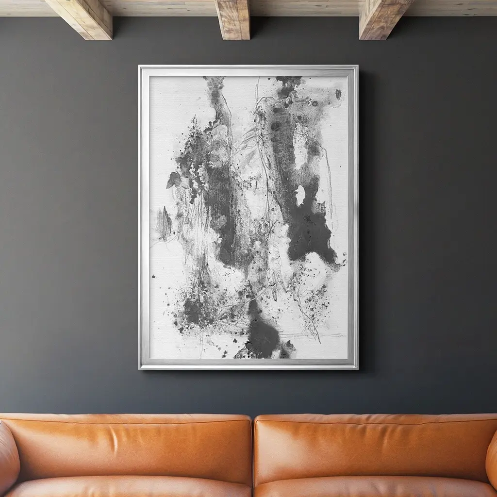 Graphite Abstract III Premium Framed Print - Ready to Hang A Premium Framed Print created to last. Framed in distressed wood and available in an array of sizes and colors Featuring a beveled a solid wood stretcher bar, each piece comes ready to hand 4 SIZES AVAILABLE 30.5''X42.5'' - Overall Size 26.5'X36.5'' - Overall Size 22.5''x30.5'' - Overall Size 18.5''x24.5'' - Overall Size Each piece is made to order. Each piece comes with hanging hardware. Made in the USA Ready to Hang
