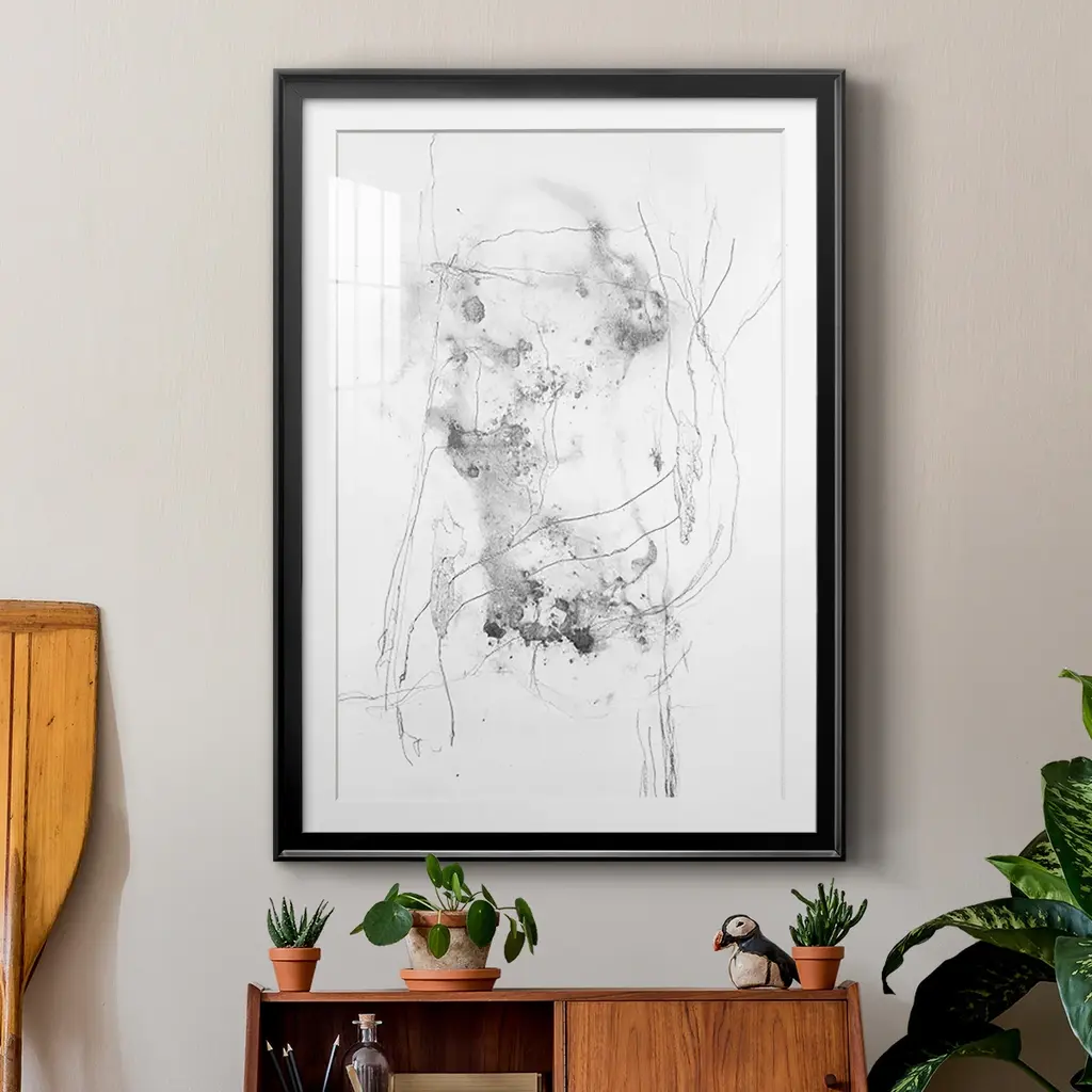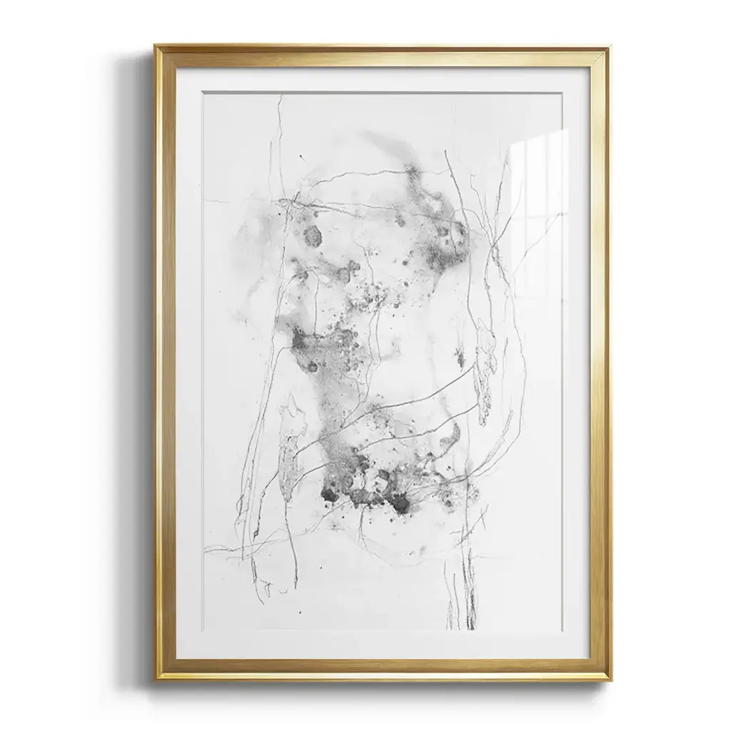 Graphite Abstract IV Premium Framed Print - Ready to Hang A Premium Framed Print created to last. Framed in distressed wood and available in an array of sizes and colors Featuring a beveled a solid wood stretcher bar, each piece comes ready to hand 4 SIZES AVAILABLE 30.5''X42.5'' - Overall Size 26.5'X36.5'' - Overall Size 22.5''x30.5'' - Overall Size 18.5''x24.5'' - Overall Size Each piece is made to order. Each piece comes with hanging hardware. Made in the USA Ready to Hang Giclee Paper Print Acrylic Glass Beveled Matt Board