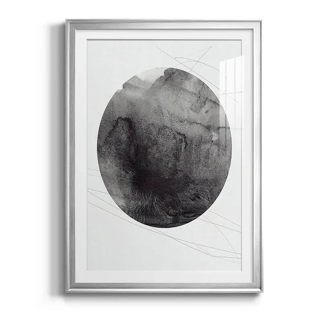 Graphite Moon I Premium Framed Print - Ready to Hang A Premium Framed Print created to last. Framed in distressed wood and available in an array of sizes and colors Featuring a beveled a solid wood stretcher bar, each piece comes ready to hand 4 SIZES AVAILABLE 30.5''X42.5'' - Overall Size 26.5'X36.5'' - Overall Size 22.5''x30.5'' - Overall Size 18.5''x24.5'' - Overall Size Each piece is made to order. Each piece comes with hanging hardware. Made in the USA Ready to Hang Giclee Paper Print Acrylic Glass Beveled Matt Board