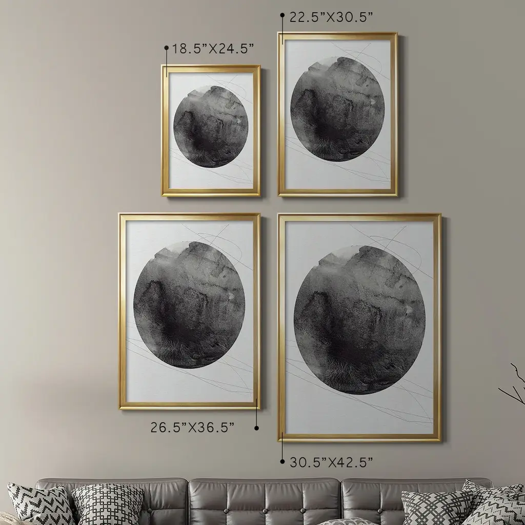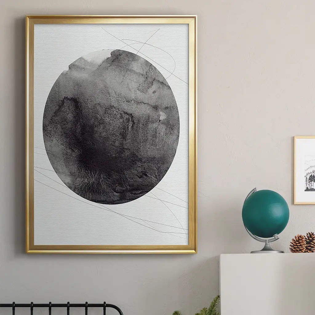 Graphite Moon I Premium Framed Print - Ready to Hang A Premium Framed Print created to last. Framed in distressed wood and available in an array of sizes and colors Featuring a beveled a solid wood stretcher bar, each piece comes ready to hand 4 SIZES AVAILABLE 30.5''X42.5'' - Overall Size 26.5'X36.5'' - Overall Size 22.5''x30.5'' - Overall Size 18.5''x24.5'' - Overall Size Each piece is made to order. Each piece comes with hanging hardware. Made in the USA Ready to Hang