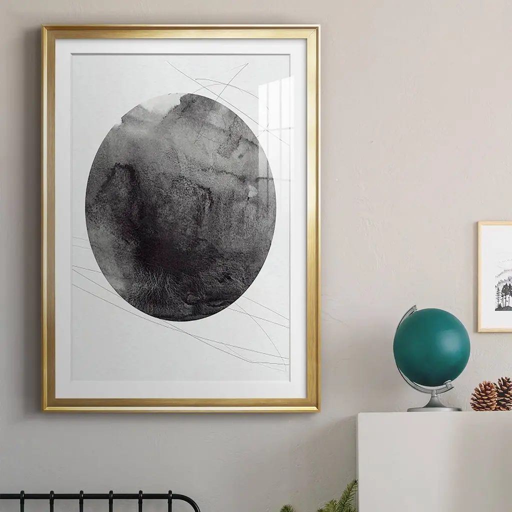 Graphite Moon I Premium Framed Print - Ready to Hang A Premium Framed Print created to last. Framed in distressed wood and available in an array of sizes and colors Featuring a beveled a solid wood stretcher bar, each piece comes ready to hand 4 SIZES AVAILABLE 30.5''X42.5'' - Overall Size 26.5'X36.5'' - Overall Size 22.5''x30.5'' - Overall Size 18.5''x24.5'' - Overall Size Each piece is made to order. Each piece comes with hanging hardware. Made in the USA Ready to Hang Giclee Paper Print Acrylic Glass Beveled Matt Board