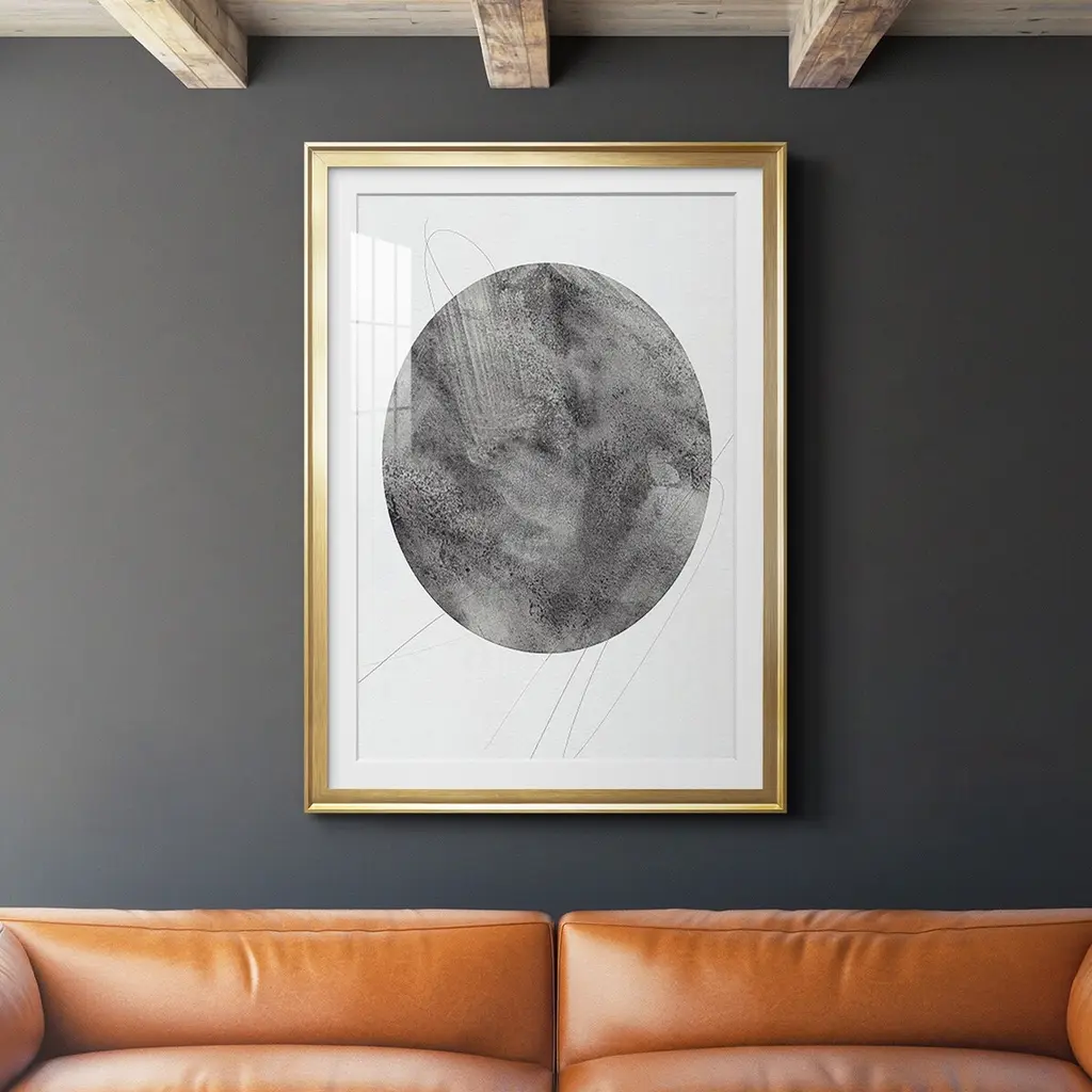 Graphite Moon II Premium Framed Print - Ready to Hang A Premium Framed Print created to last. Framed in distressed wood and available in an array of sizes and colors Featuring a beveled a solid wood stretcher bar, each piece comes ready to hand 4 SIZES AVAILABLE 30.5''X42.5'' - Overall Size 26.5'X36.5'' - Overall Size 22.5''x30.5'' - Overall Size 18.5''x24.5'' - Overall Size Each piece is made to order. Each piece comes with hanging hardware. Made in the USA Ready to Hang Giclee Paper Print Acrylic Glass Beveled Matt Board