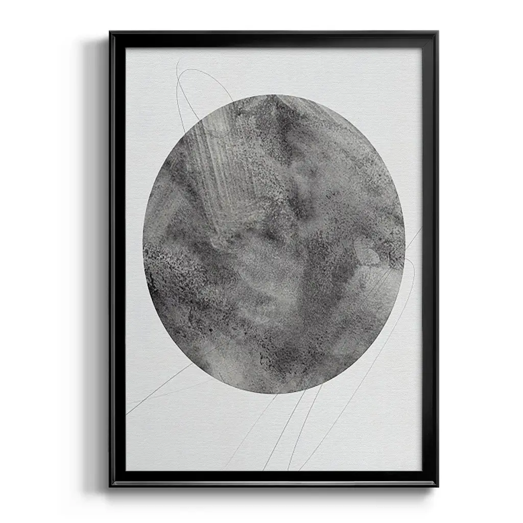 Graphite Moon II Premium Framed Print - Ready to Hang A Premium Framed Print created to last. Framed in distressed wood and available in an array of sizes and colors Featuring a beveled a solid wood stretcher bar, each piece comes ready to hand 4 SIZES AVAILABLE 30.5''X42.5'' - Overall Size 26.5'X36.5'' - Overall Size 22.5''x30.5'' - Overall Size 18.5''x24.5'' - Overall Size Each piece is made to order. Each piece comes with hanging hardware. Made in the USA Ready to Hang