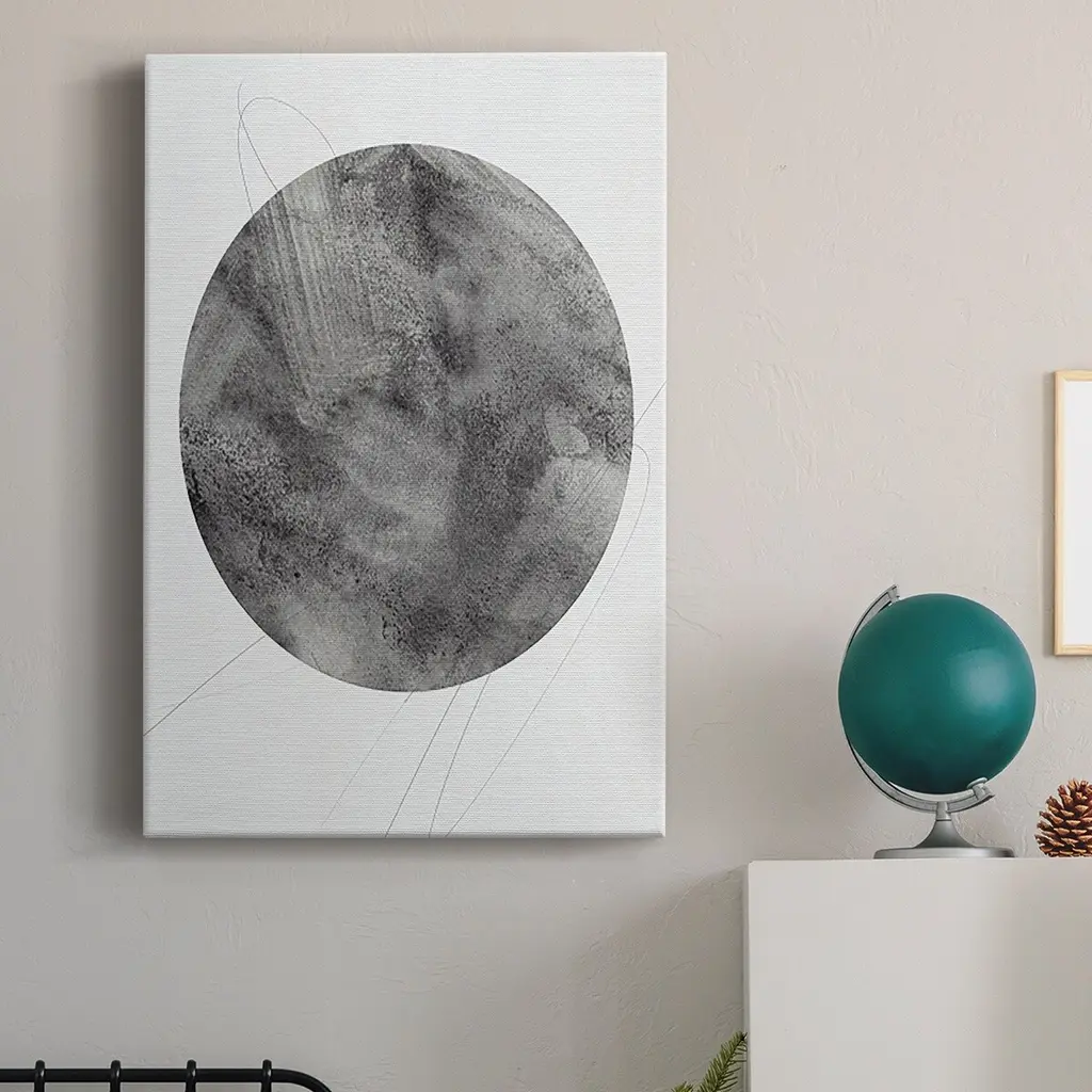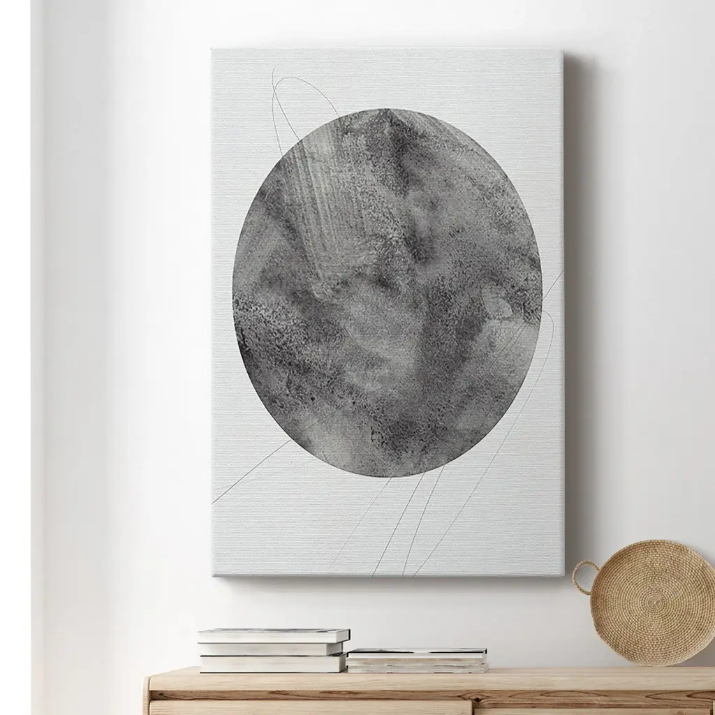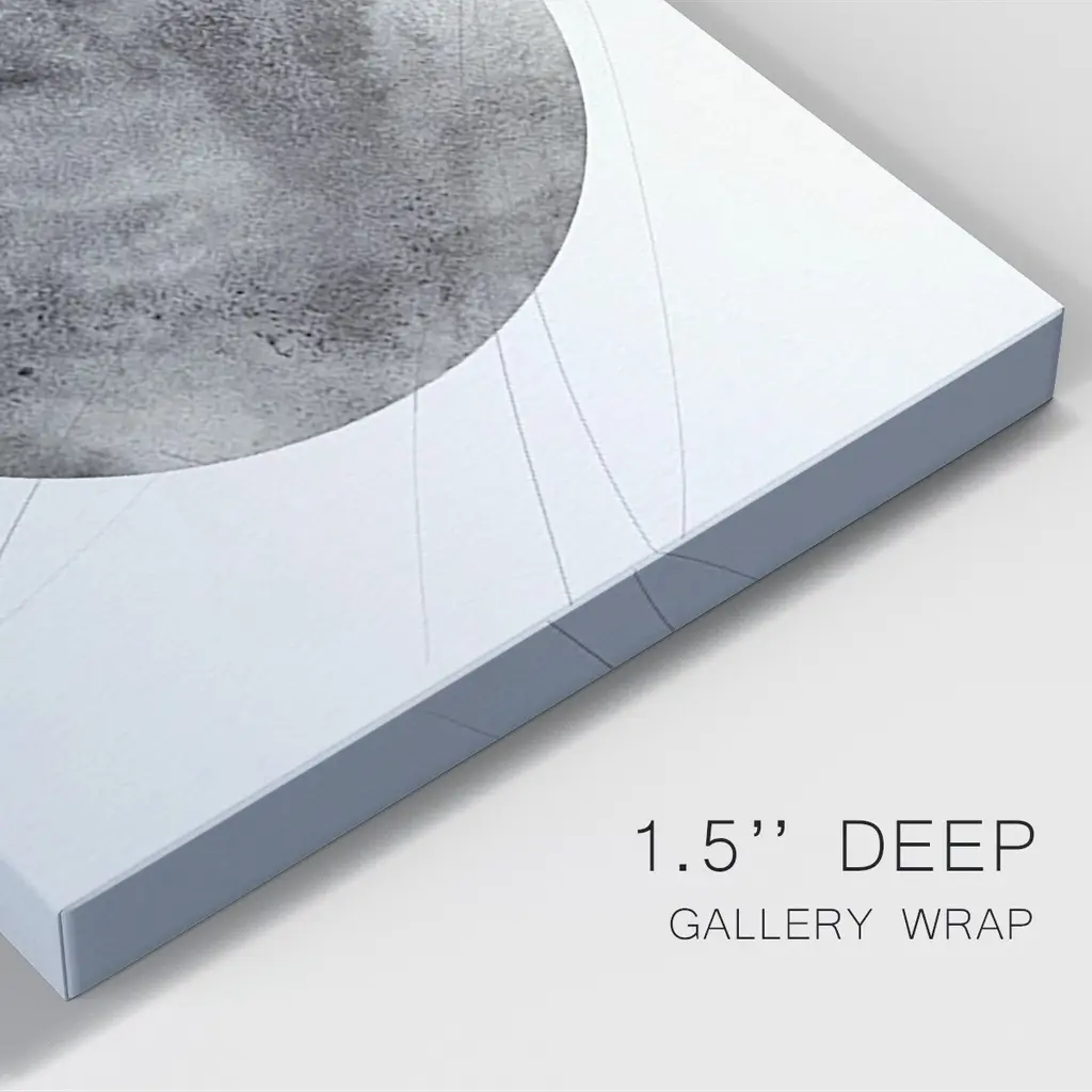 Graphite Moon II Premium Gallery Wrapped Canvas - Ready to Hang A premium hand stretched gallery wrapped canvas print created to last. Featuring a beveled a solid wood stretcher bar, each piece comes ready to hand 6 SIZES AVAILABLE 8''X12'' - Overall Size 12''X18'' - Overall Size 18''X27'' - Overall Size 24''x36'' - Overall Size 32''x48'' - Overall Size 40''x60'' - Overall Size Each piece is made to order. Built to Last Each piece comes ready to hang Solid wood stretcher Fade and Water resistant Made domestically