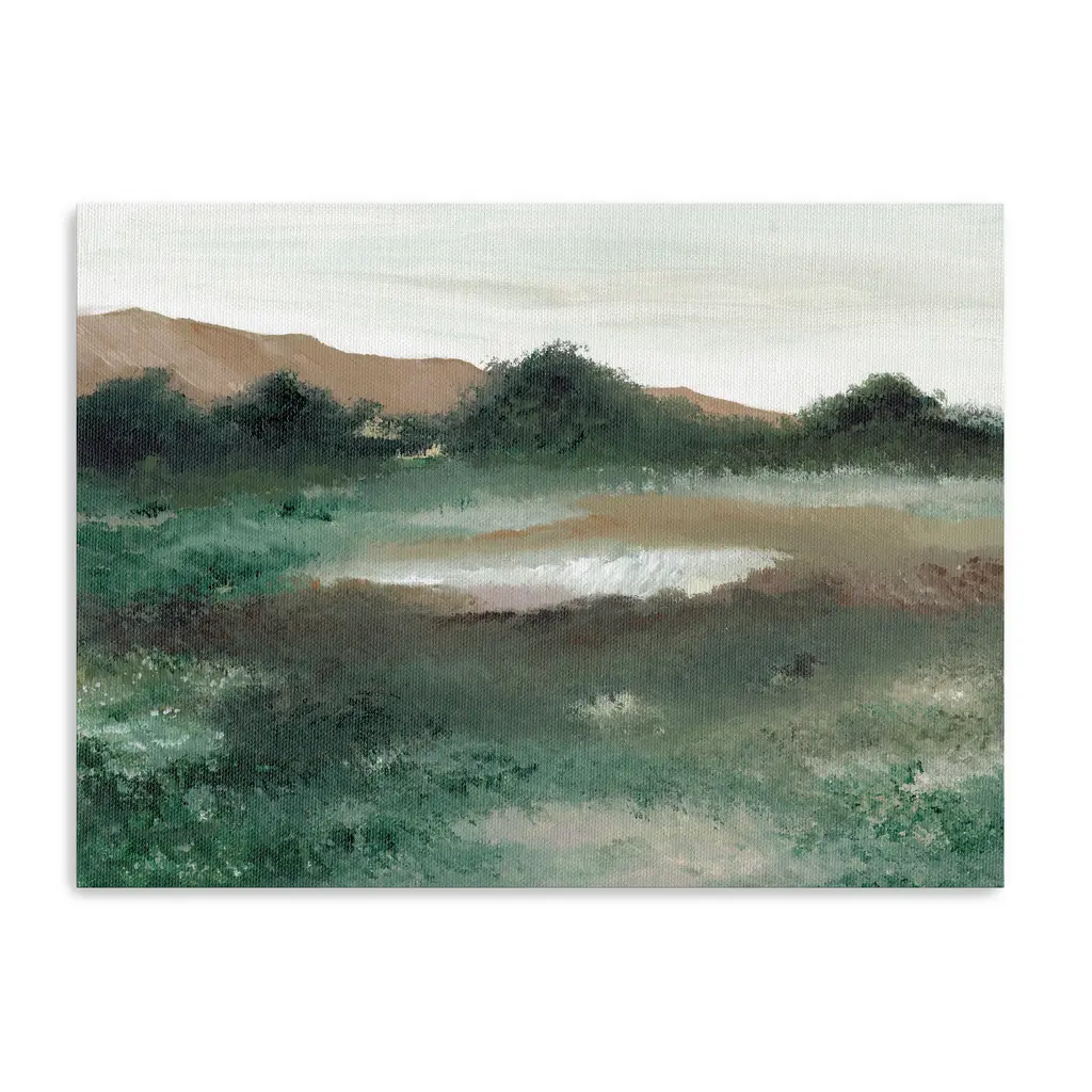 This modern landscape canvas blends soft greens and neutral tones to evoke the peaceful rhythm of nature. Its clean lines and muted palette make it a versatile piece for any room seeking calm and clarity. Our Gallery Wrap Canvas Prints are proudly assembled with high quality materials in California, USA. Each piece is printed on a thick, archival grade canvas using Giclee technology. It is then hand-stretched by our experienced artisans over solid wood bars, which will not warp over time. The final product is a piece personally crafted for you to confidently display on your wall. Care and Assembly: Ensure that the location of your piece has little to no exposure to heat, sunlight, and moisture. Wipe clean, only if needed. Each piece includes hanging hardware to hang on your wall horizontally.