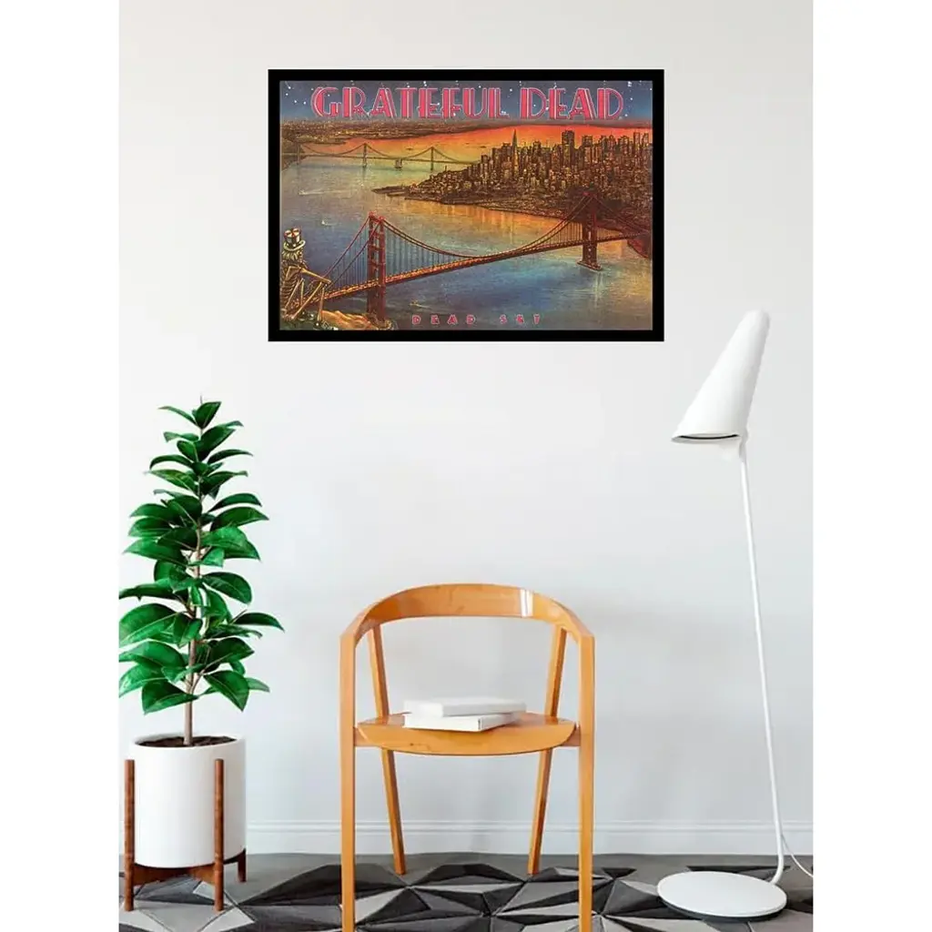 Enhance your surroundings with Officially Licensed Grateful Dead Dead Set Framed Poster - 24 x 36 Inch. It comes in a wooden frame with plexiglass for protection, ensuring your poster lasts. This poster is a ideal gift choice for any room, adding a contemporary touch with captivating artwork. It is printed on premium poster paper, vibrant and fade-resistant. Displaying is easy - use tape, putty, pins, or frames. You can even laminate it for stylish signs. The frame is sturdy yet lightweight, making wall mounting a breeze. Upgrade your space with this stylish and durable poster and frame combo. The finished size of item measure 38.5 inches length by 26.5 inches height by 0.5 inches width. The shipping dimensions of the item measure 39 inches length by 2 inches width by 27 inches height, with a total shipping weight of 7 pounds.Features:
