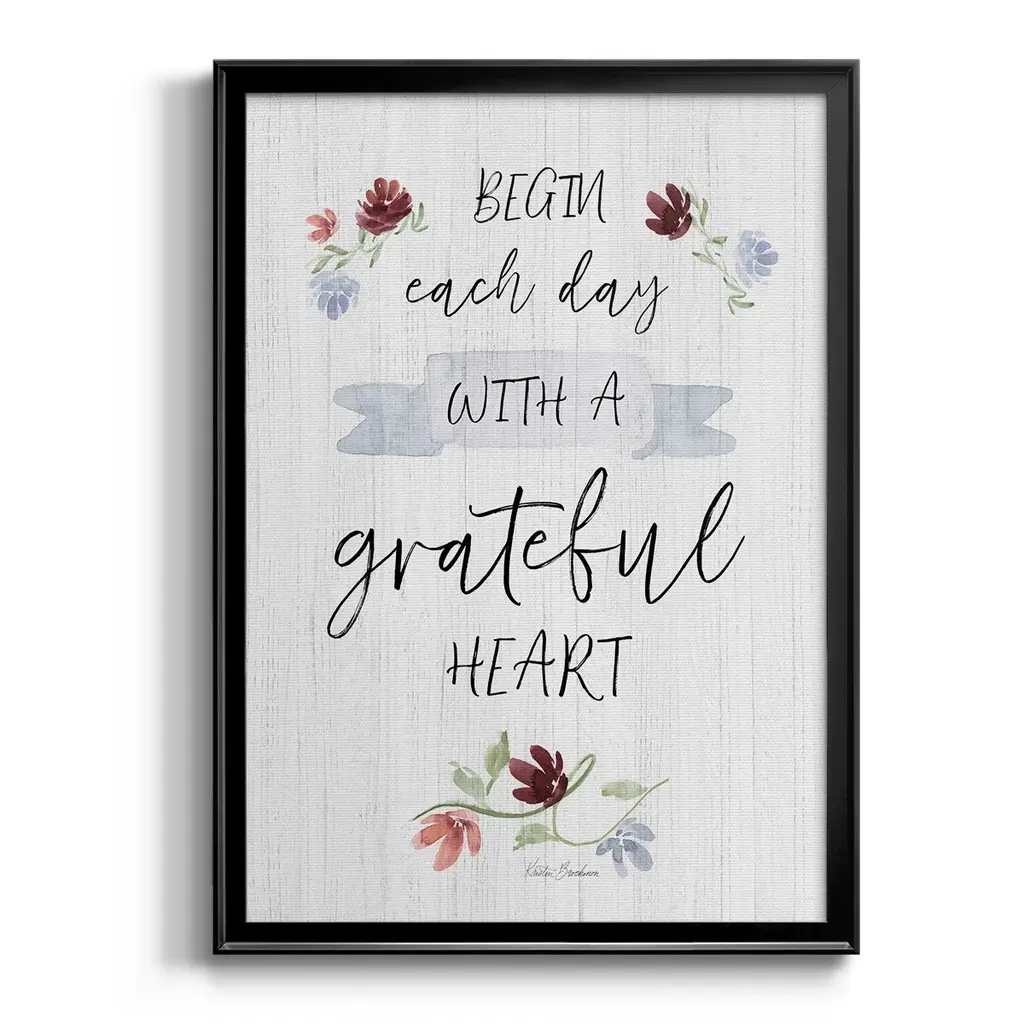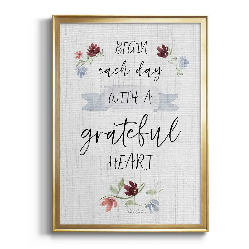Grateful Heart Premium Framed Print - Ready to Hang A Premium Framed Print created to last. Framed in distressed wood and available in an array of sizes and colors Featuring a beveled a solid wood stretcher bar, each piece comes ready to hand 4 SIZES AVAILABLE 30.5''X42.5'' - Overall Size 26.5'X36.5'' - Overall Size 22.5''x30.5'' - Overall Size 18.5''x24.5'' - Overall Size Each piece is made to order. Each piece comes with hanging hardware. Made in the USA Ready to Hang