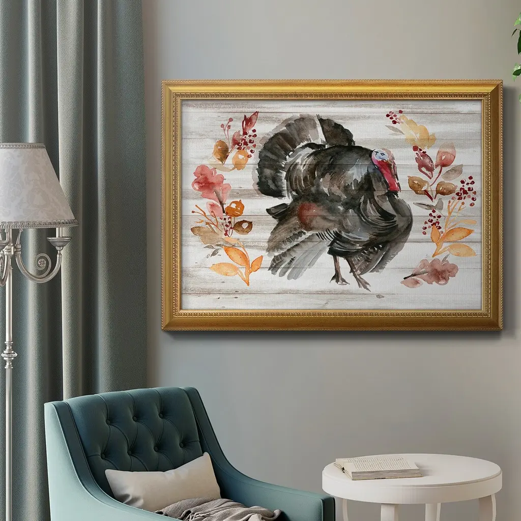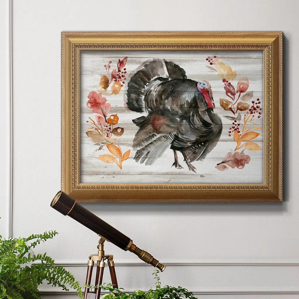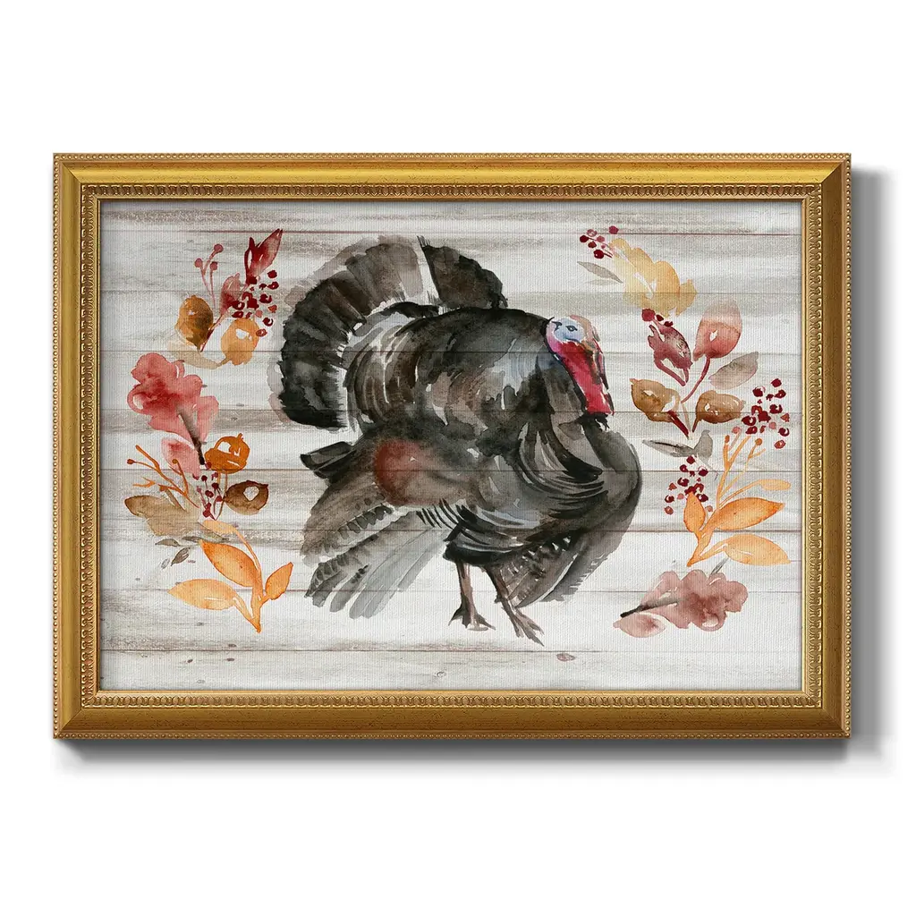 Grateful Thanksgiving II Premium Framed Canvas- Ready to Hang A Premium Framed Canvas created to last. Framed in distressed wood and available in an array of sizes and colors Featuring a beveled a solid wood stretcher bar, each piece comes ready to hand 3 SIZES AVAILABLE 16''X20'' - Overall Size 18'X27'' - Overall Size 24''x36'' - Overall Size Each piece is made to order. Each piece comes with hanging hardware. Made in the USA Ready to Hang Giclee Paper Print Acrylic Glass Beveled Matt Board
