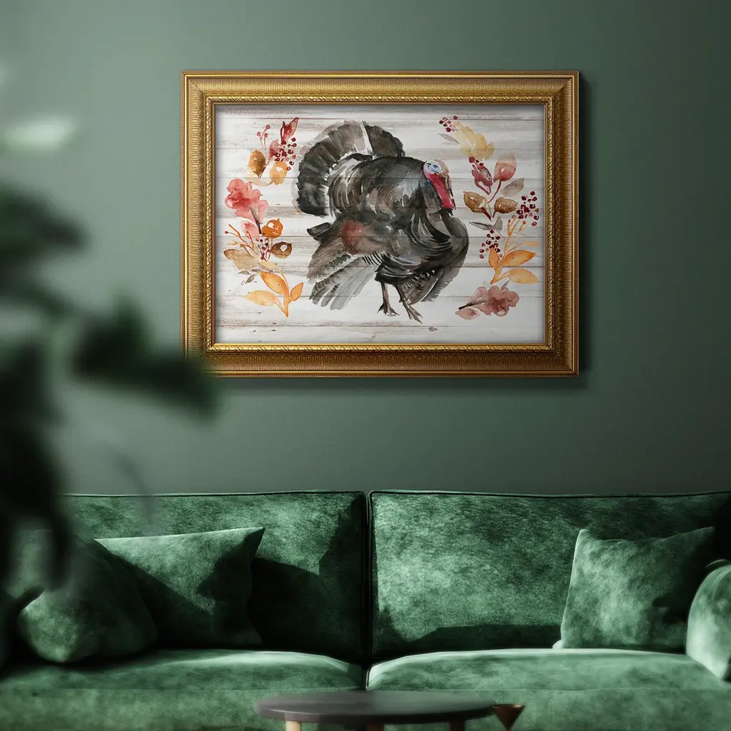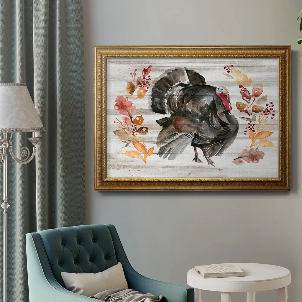 Grateful Thanksgiving II Premium Framed Canvas- Ready to Hang A Premium Framed Canvas created to last. Framed in distressed wood and available in an array of sizes and colors Featuring a beveled a solid wood stretcher bar, each piece comes ready to hand 3 SIZES AVAILABLE 16''X20'' - Overall Size 18'X27'' - Overall Size 24''x36'' - Overall Size Each piece is made to order. Each piece comes with hanging hardware. Made in the USA Ready to Hang Giclee Paper Print Acrylic Glass Beveled Matt Board