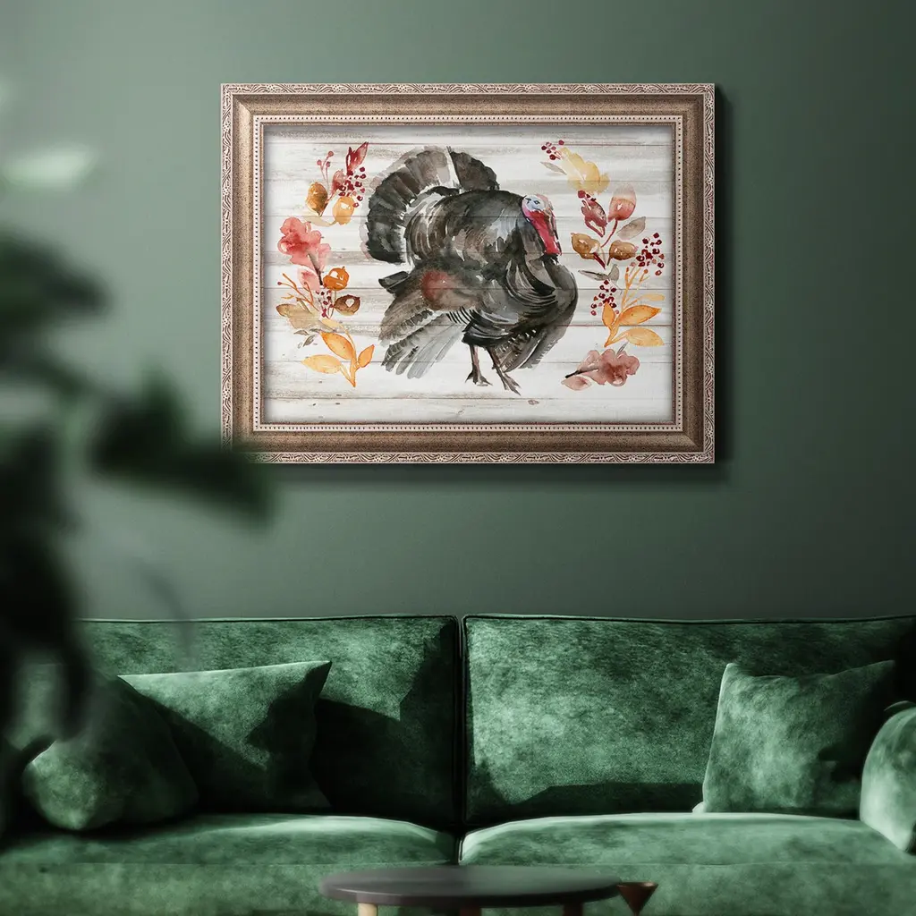 Grateful Thanksgiving II Premium Framed Canvas- Ready to Hang A Premium Framed Canvas created to last. Framed in distressed wood and available in an array of sizes and colors Featuring a beveled a solid wood stretcher bar, each piece comes ready to hand 3 SIZES AVAILABLE 16''X20'' - Overall Size 18'X27'' - Overall Size 24''x36'' - Overall Size Each piece is made to order. Each piece comes with hanging hardware. Made in the USA Ready to Hang Giclee Paper Print Acrylic Glass Beveled Matt Board