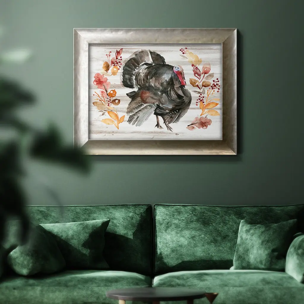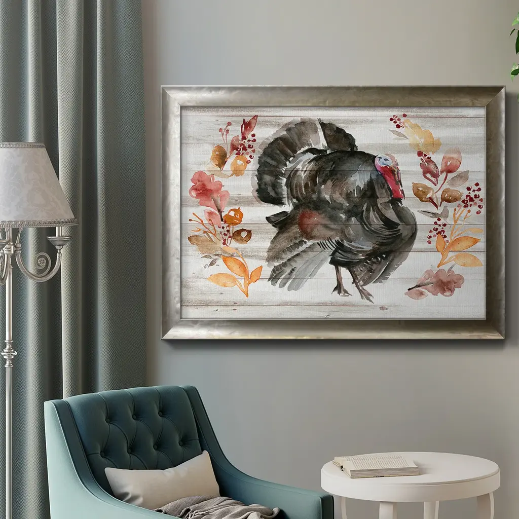 Grateful Thanksgiving II Premium Framed Canvas- Ready to Hang A Premium Framed Canvas created to last. Framed in distressed wood and available in an array of sizes and colors Featuring a beveled a solid wood stretcher bar, each piece comes ready to hand 3 SIZES AVAILABLE 16''X20'' - Overall Size 18'X27'' - Overall Size 24''x36'' - Overall Size Each piece is made to order. Each piece comes with hanging hardware. Made in the USA Ready to Hang Giclee Paper Print Acrylic Glass Beveled Matt Board