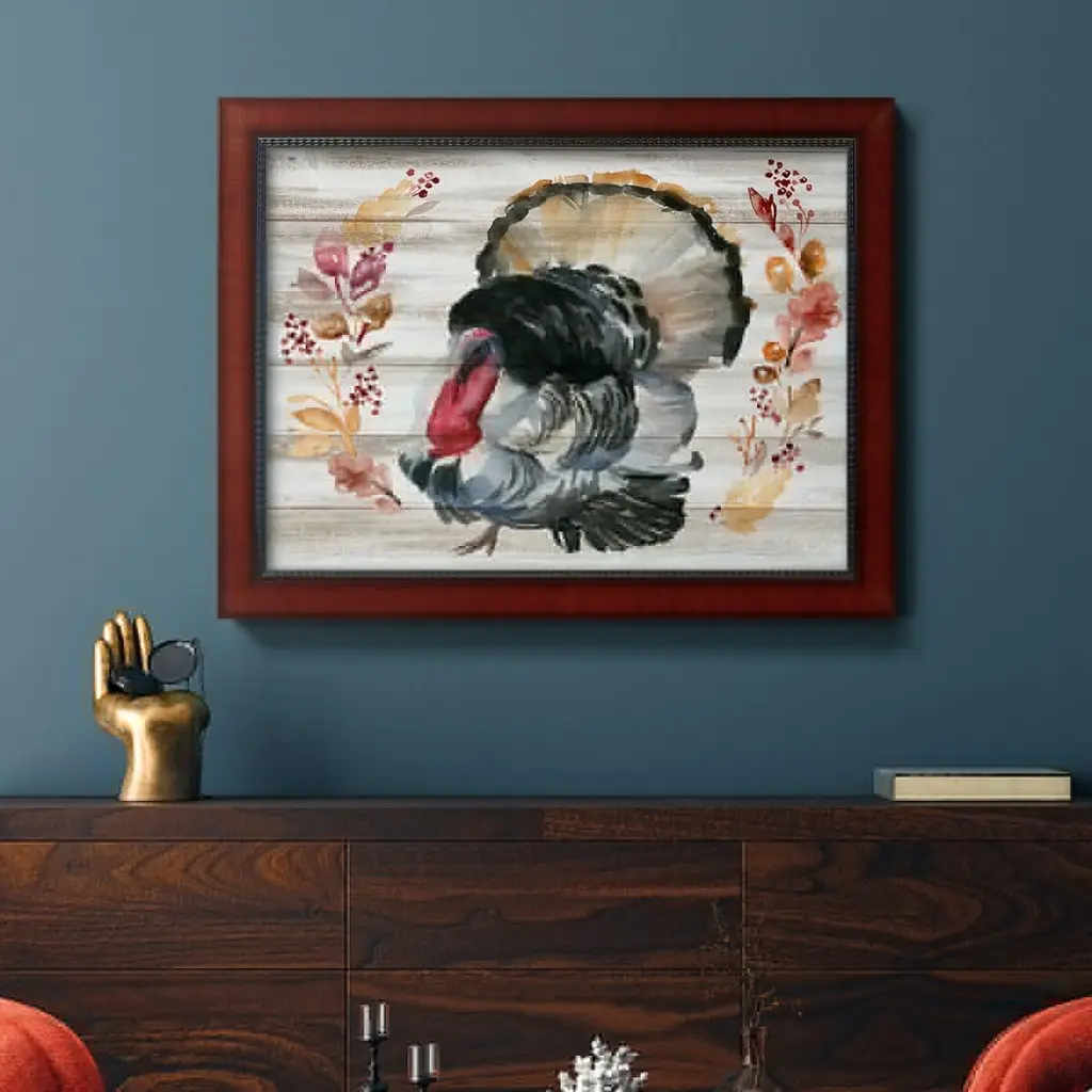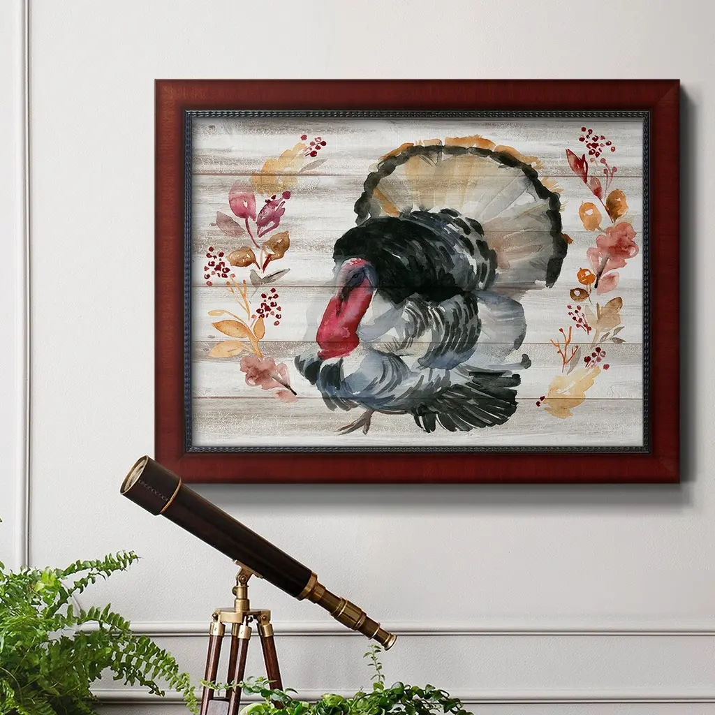 Grateful Thanksgiving IV Premium Framed Canvas- Ready to Hang A Premium Framed Canvas created to last. Framed in distressed wood and available in an array of sizes and colors Featuring a beveled a solid wood stretcher bar, each piece comes ready to hand 3 SIZES AVAILABLE 16''X20'' - Overall Size 18'X27'' - Overall Size 24''x36'' - Overall Size Each piece is made to order. Each piece comes with hanging hardware. Made in the USA Ready to Hang Giclee Paper Print Acrylic Glass Beveled Matt Board