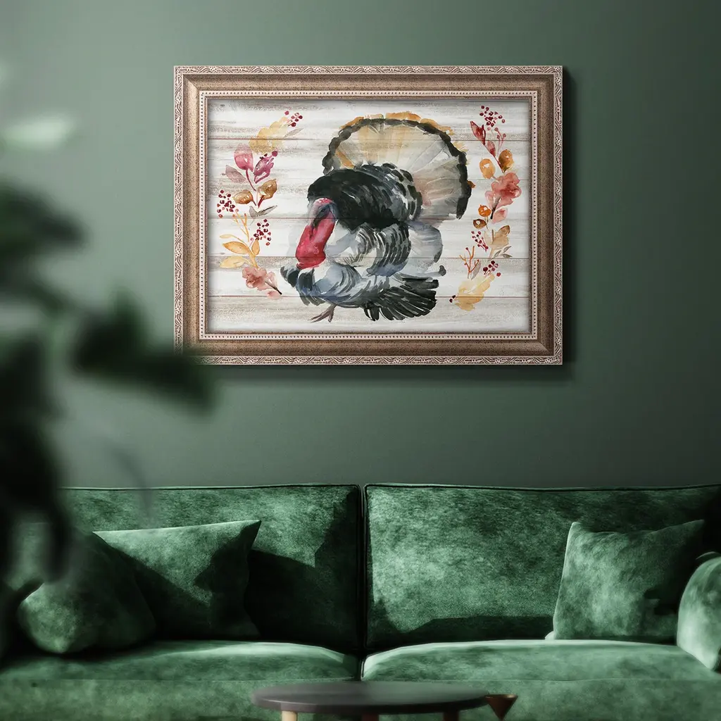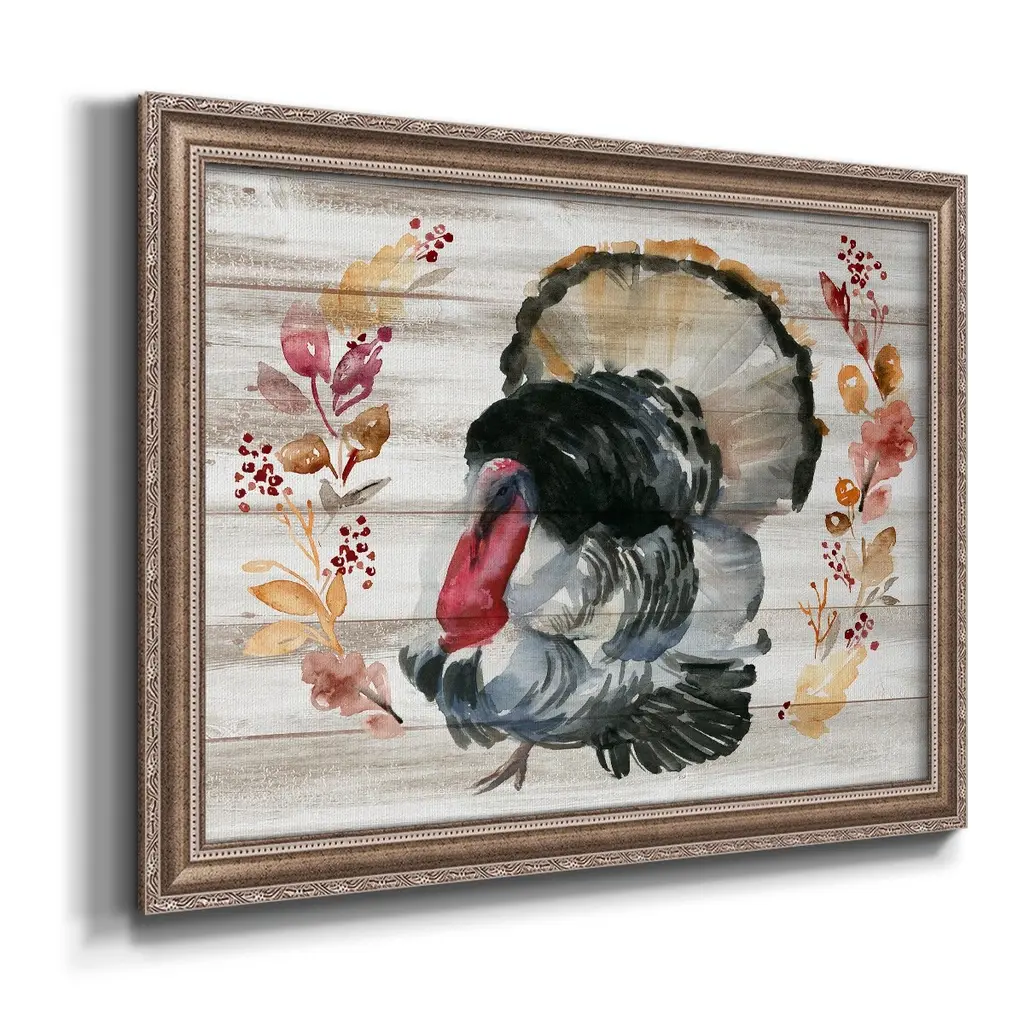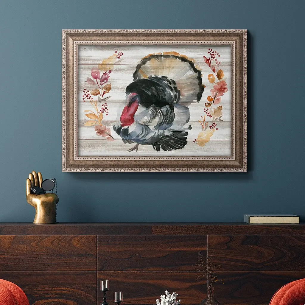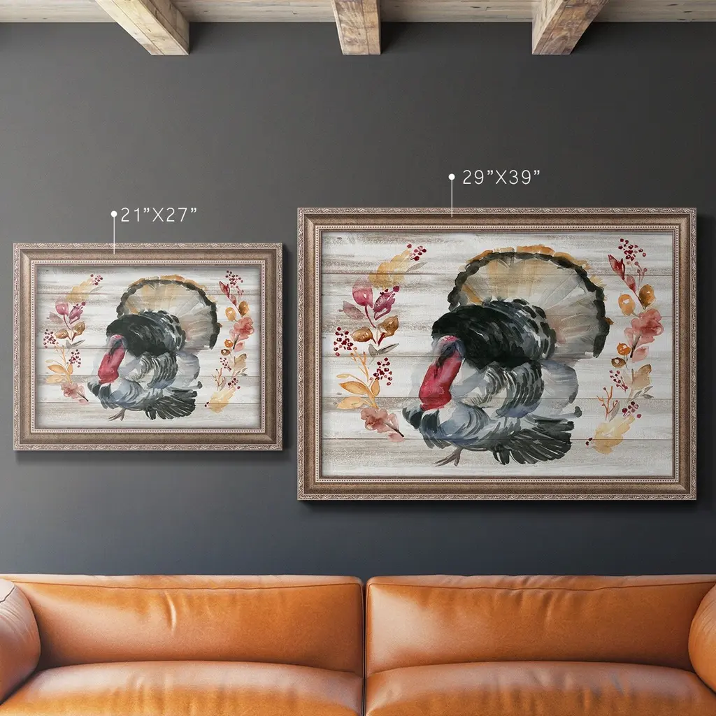 Grateful Thanksgiving IV Premium Framed Canvas- Ready to Hang A Premium Framed Canvas created to last. Framed in distressed wood and available in an array of sizes and colors Featuring a beveled a solid wood stretcher bar, each piece comes ready to hand 3 SIZES AVAILABLE 16''X20'' - Overall Size 18'X27'' - Overall Size 24''x36'' - Overall Size Each piece is made to order. Each piece comes with hanging hardware. Made in the USA Ready to Hang Giclee Paper Print Acrylic Glass Beveled Matt Board