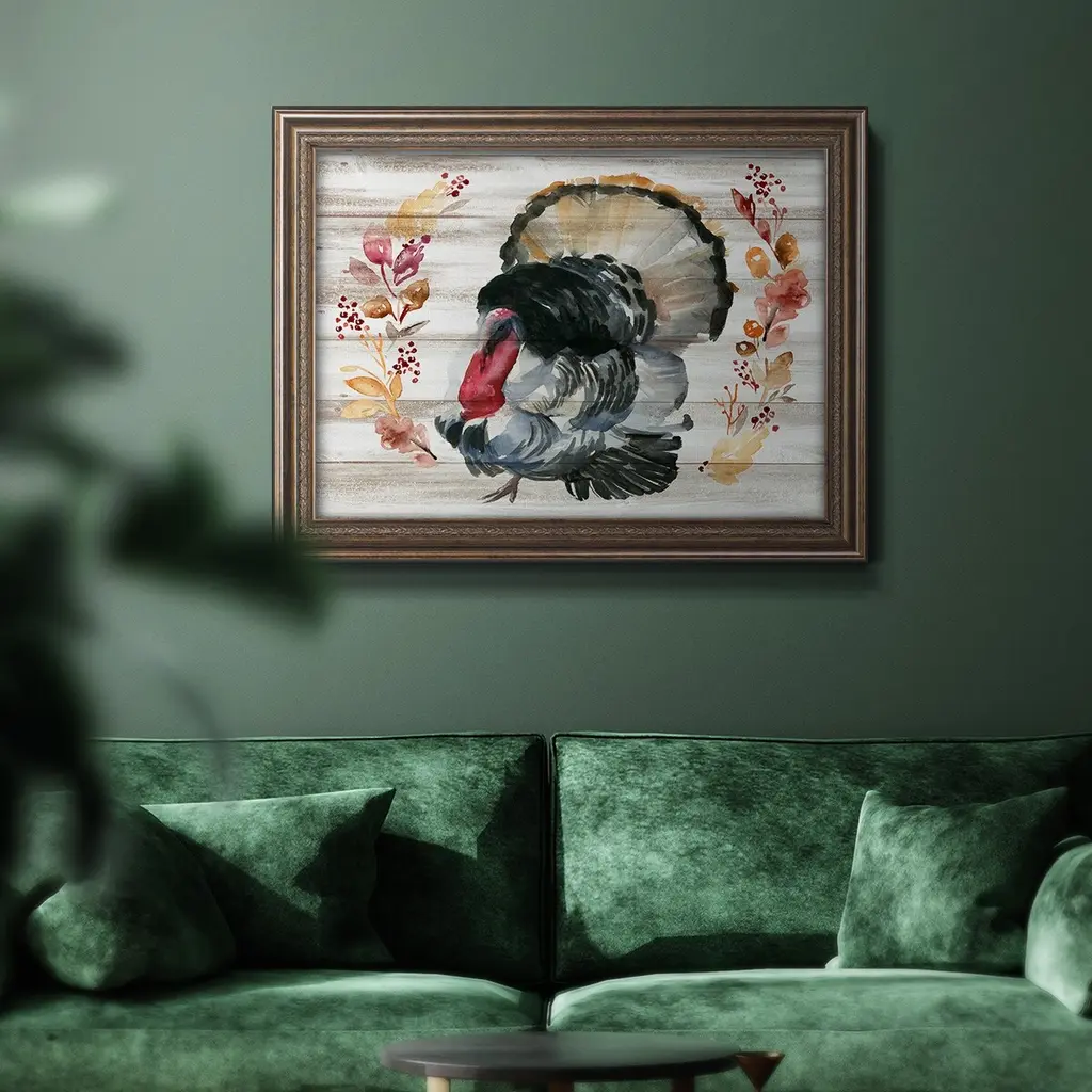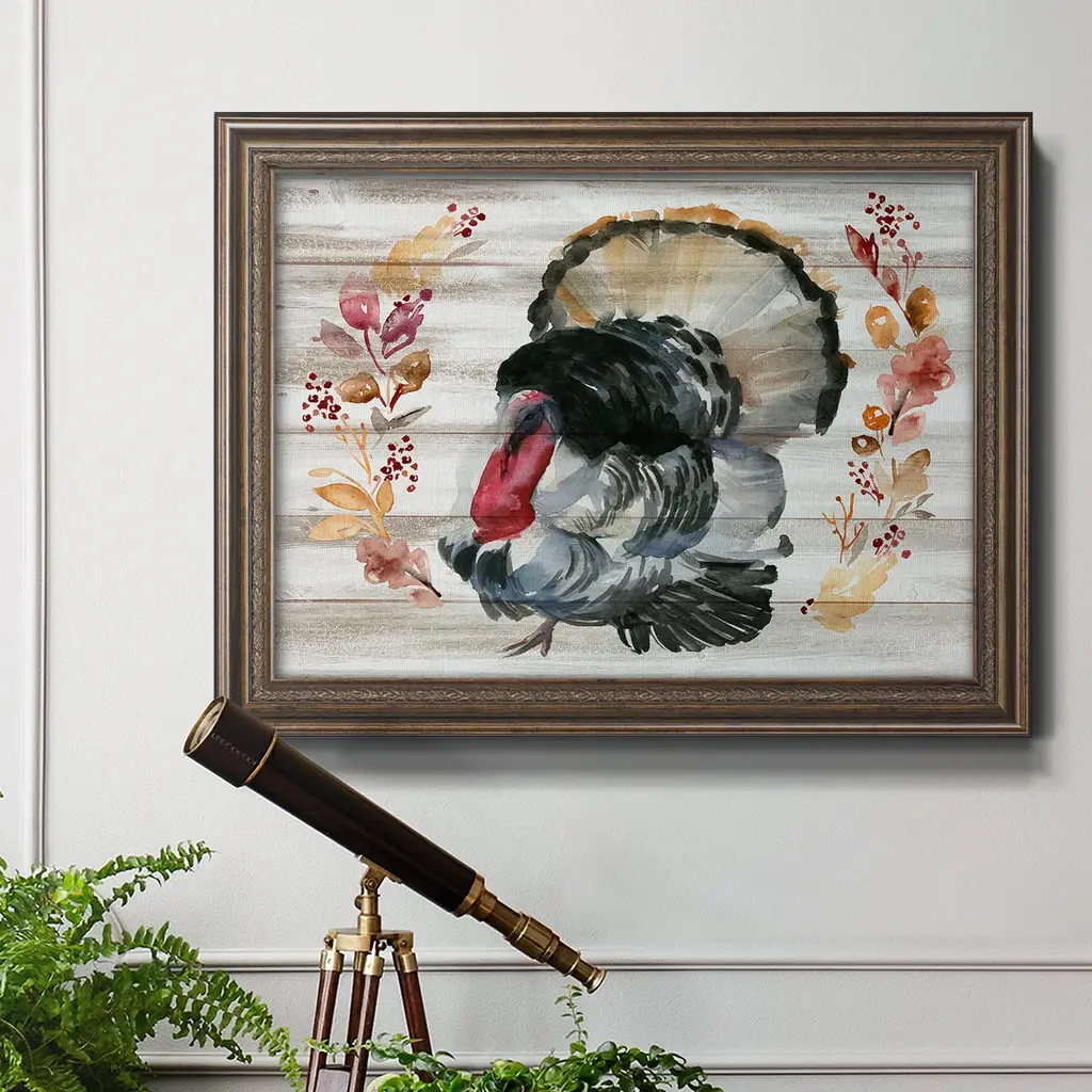 Grateful Thanksgiving IV Premium Framed Canvas- Ready to Hang A Premium Framed Canvas created to last. Framed in distressed wood and available in an array of sizes and colors Featuring a beveled a solid wood stretcher bar, each piece comes ready to hand 3 SIZES AVAILABLE 16''X20'' - Overall Size 18'X27'' - Overall Size 24''x36'' - Overall Size Each piece is made to order. Each piece comes with hanging hardware. Made in the USA Ready to Hang Giclee Paper Print Acrylic Glass Beveled Matt Board