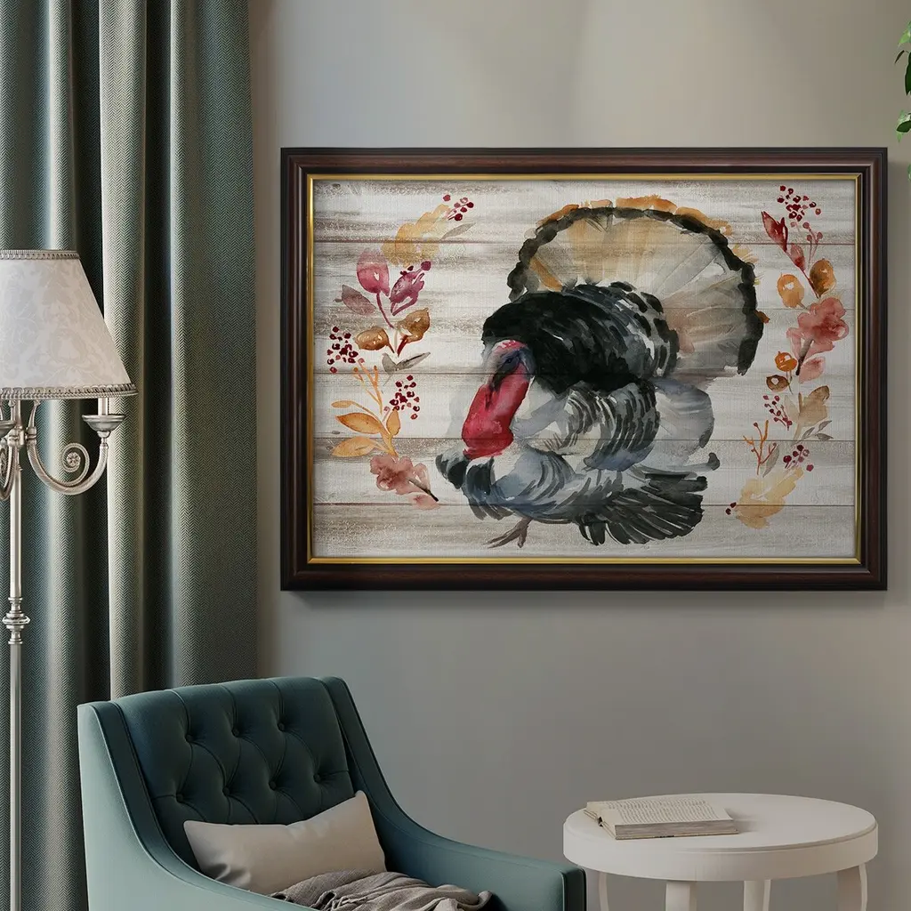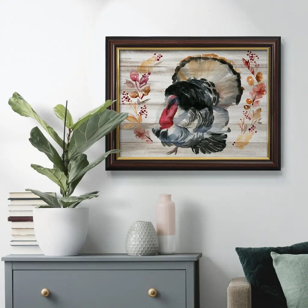 Grateful Thanksgiving IV Premium Framed Canvas- Ready to Hang A Premium Framed Canvas created to last. Framed in distressed wood and available in an array of sizes and colors Featuring a beveled a solid wood stretcher bar, each piece comes ready to hand 3 SIZES AVAILABLE 16''X20'' - Overall Size 18'X27'' - Overall Size 24''x36'' - Overall Size Each piece is made to order. Each piece comes with hanging hardware. Made in the USA Ready to Hang Giclee Paper Print Acrylic Glass Beveled Matt Board
