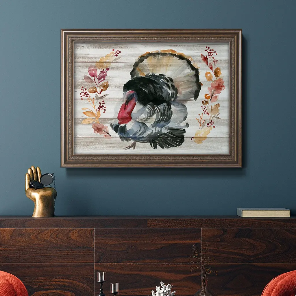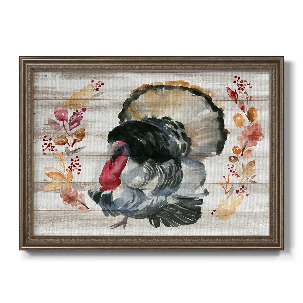 Grateful Thanksgiving IV Premium Framed Canvas- Ready to Hang A Premium Framed Canvas created to last. Framed in distressed wood and available in an array of sizes and colors Featuring a beveled a solid wood stretcher bar, each piece comes ready to hand 3 SIZES AVAILABLE 16''X20'' - Overall Size 18'X27'' - Overall Size 24''x36'' - Overall Size Each piece is made to order. Each piece comes with hanging hardware. Made in the USA Ready to Hang Giclee Paper Print Acrylic Glass Beveled Matt Board