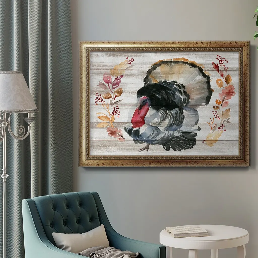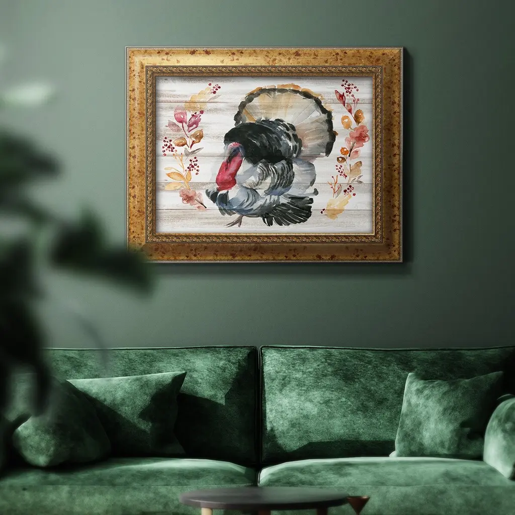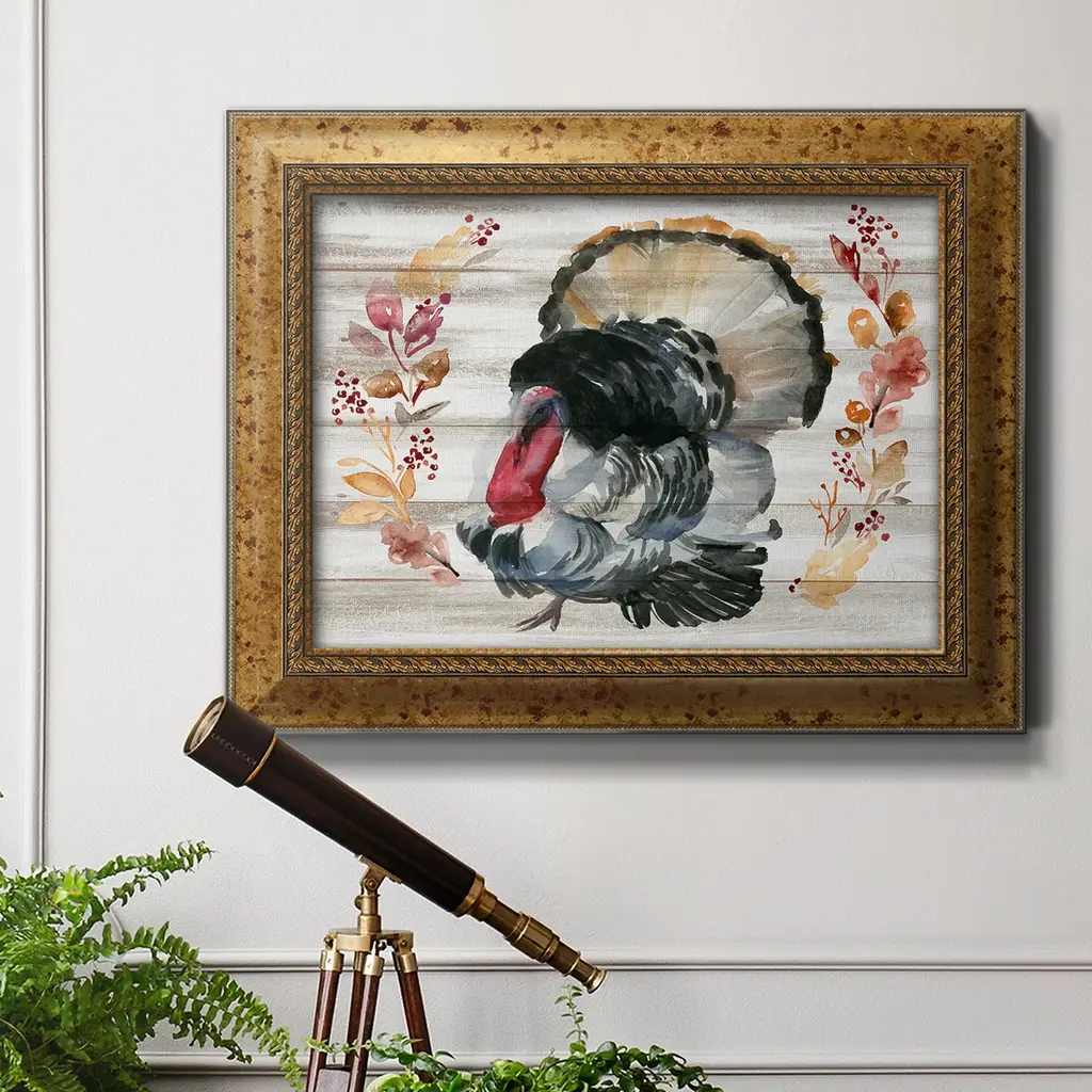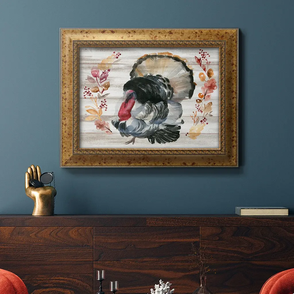Grateful Thanksgiving IV Premium Framed Canvas- Ready to Hang A Premium Framed Canvas created to last. Framed in distressed wood and available in an array of sizes and colors Featuring a beveled a solid wood stretcher bar, each piece comes ready to hand 3 SIZES AVAILABLE 16''X20'' - Overall Size 18'X27'' - Overall Size 24''x36'' - Overall Size Each piece is made to order. Each piece comes with hanging hardware. Made in the USA Ready to Hang Giclee Paper Print Acrylic Glass Beveled Matt Board