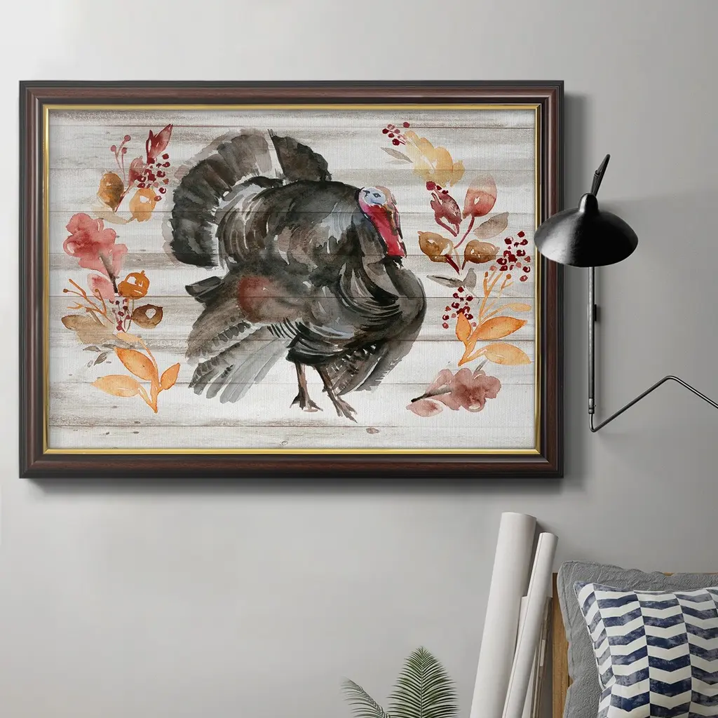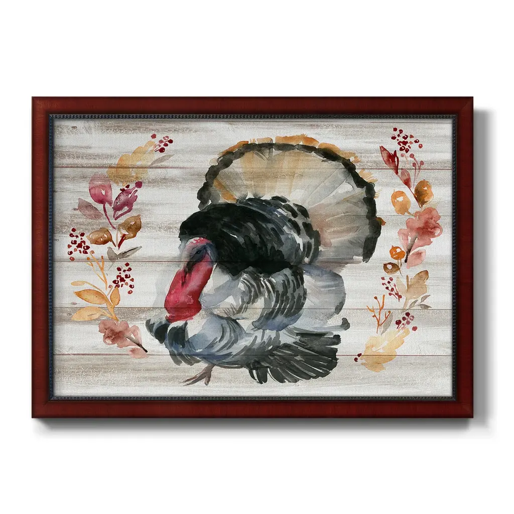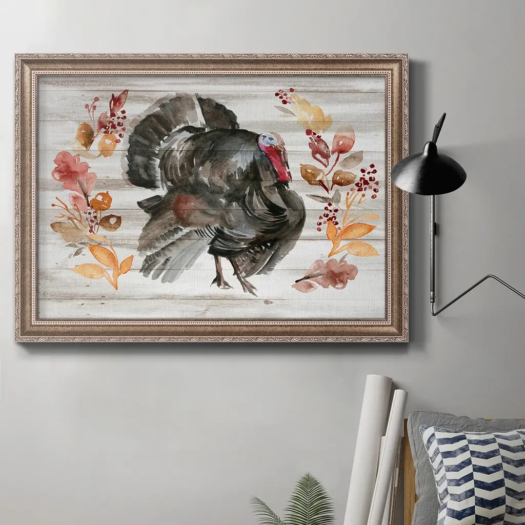 Grateful Thanksgiving IV Premium Framed Canvas- Ready to Hang A Premium Framed Canvas created to last. Framed in distressed wood and available in an array of sizes and colors Featuring a beveled a solid wood stretcher bar, each piece comes ready to hand 3 SIZES AVAILABLE 16''X20'' - Overall Size 18'X27'' - Overall Size 24''x36'' - Overall Size Each piece is made to order. Each piece comes with hanging hardware. Made in the USA Ready to Hang Giclee Paper Print Acrylic Glass Beveled Matt Board