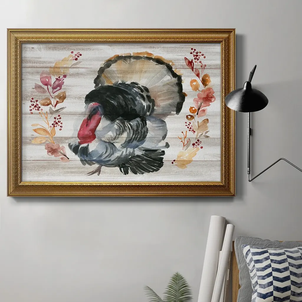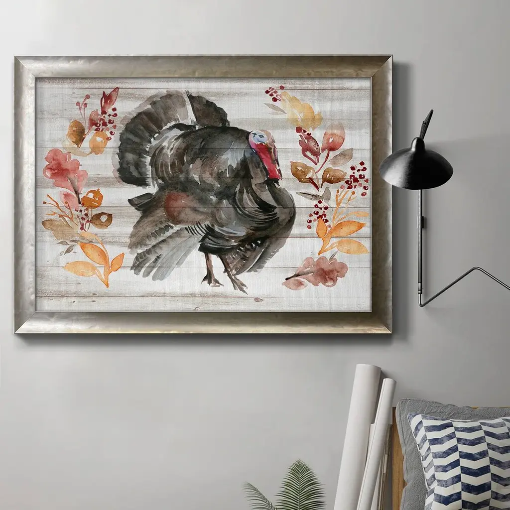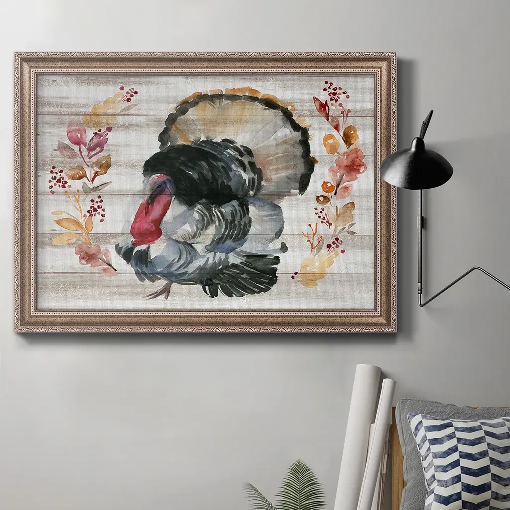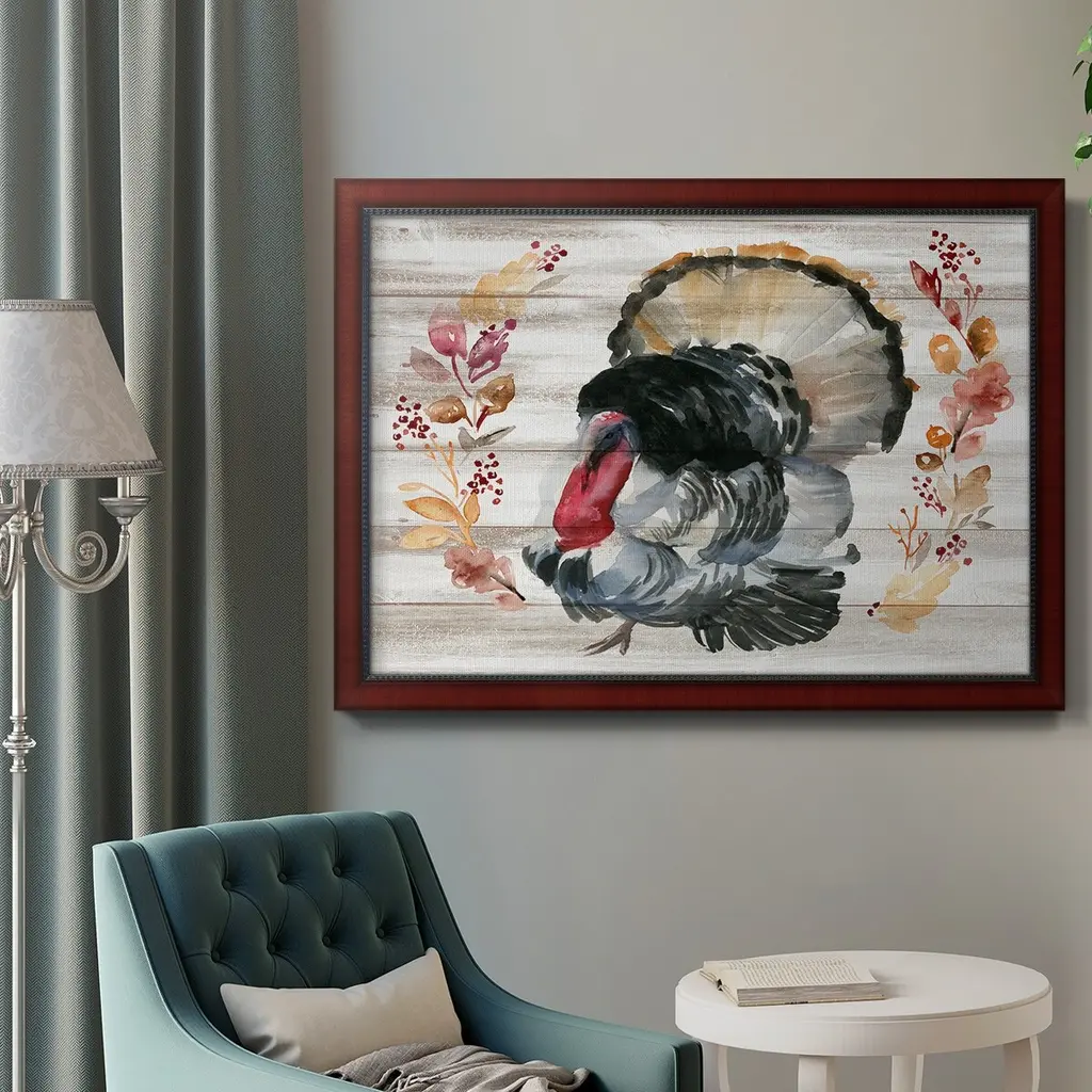 Grateful Thanksgiving IV Premium Framed Canvas- Ready to Hang A Premium Framed Canvas created to last. Framed in distressed wood and available in an array of sizes and colors Featuring a beveled a solid wood stretcher bar, each piece comes ready to hand 3 SIZES AVAILABLE 16''X20'' - Overall Size 18'X27'' - Overall Size 24''x36'' - Overall Size Each piece is made to order. Each piece comes with hanging hardware. Made in the USA Ready to Hang Giclee Paper Print Acrylic Glass Beveled Matt Board