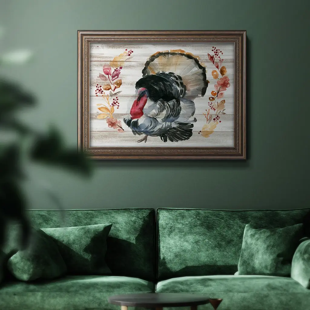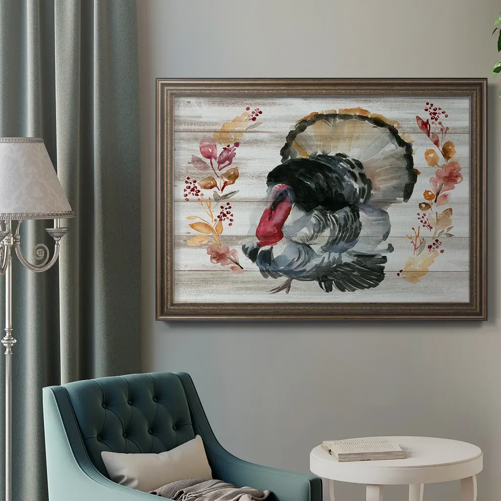 Grateful Thanksgiving IV Premium Framed Canvas- Ready to Hang A Premium Framed Canvas created to last. Framed in distressed wood and available in an array of sizes and colors Featuring a beveled a solid wood stretcher bar, each piece comes ready to hand 3 SIZES AVAILABLE 16''X20'' - Overall Size 18'X27'' - Overall Size 24''x36'' - Overall Size Each piece is made to order. Each piece comes with hanging hardware. Made in the USA Ready to Hang Giclee Paper Print Acrylic Glass Beveled Matt Board