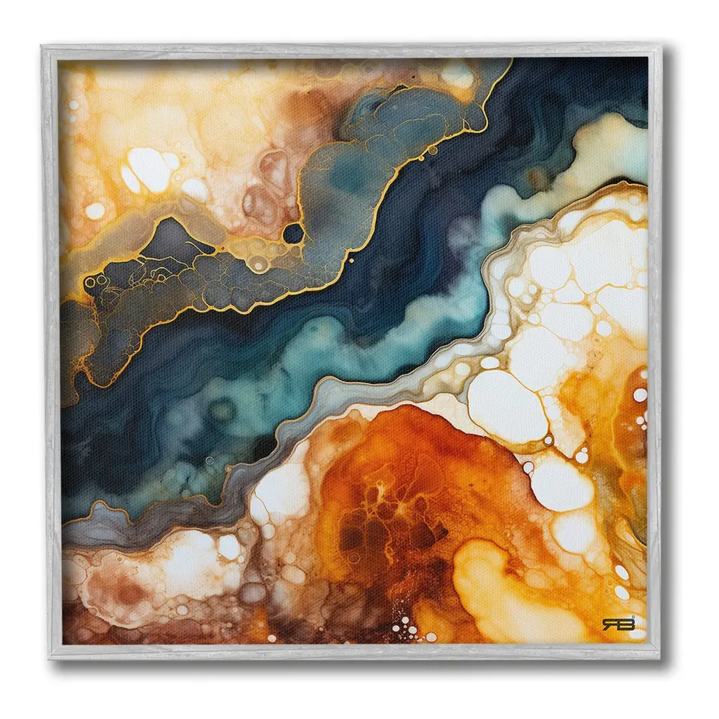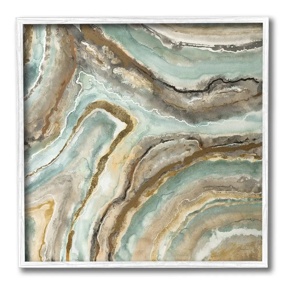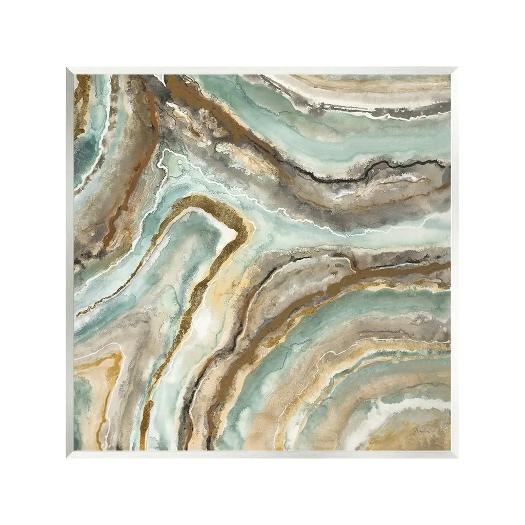 This contemporary artwork offers the intricacies of sliced agate completed in watercolors with gold accents.