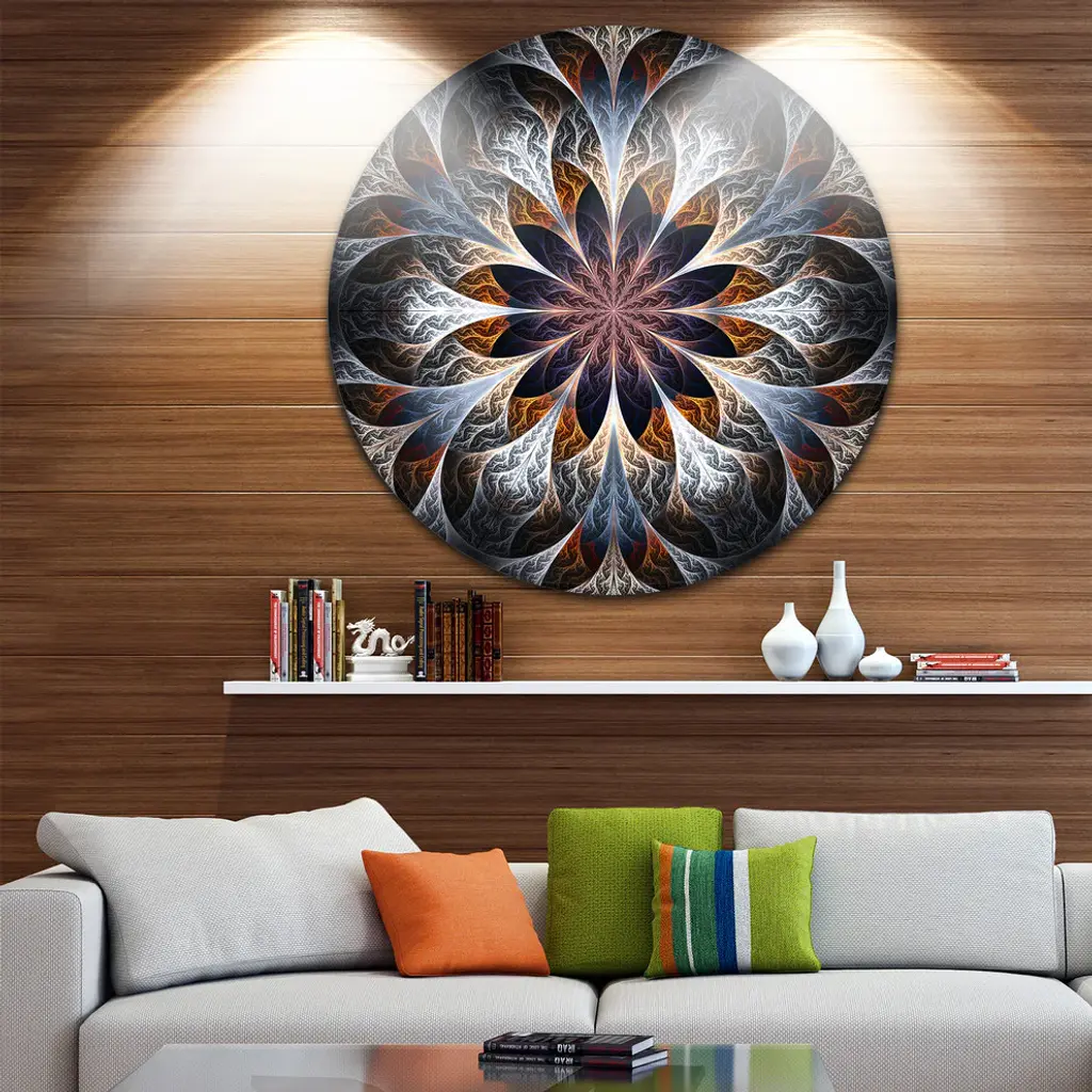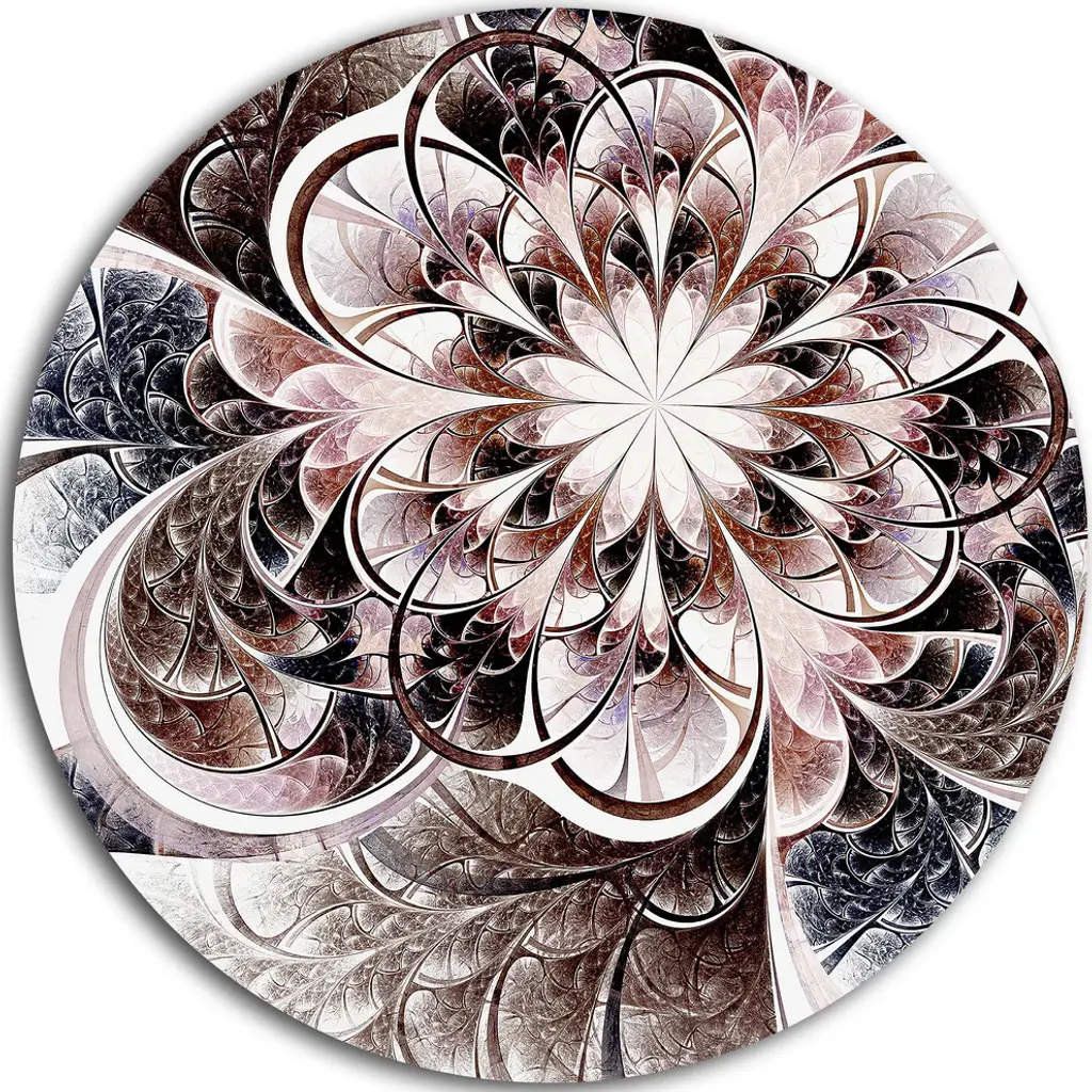 Bring Contemporary Abstraction to your home with this large Circle Metal wall art. This Gray Brown Digital Art Fractal Flower Metal Artwork makes it the focal point of any room or office. - White Gloss Coating ensures colors are extra vibrant with light reflection.- Aluminum grade Sheet Metal with 1 inch mounting frame on the back giving the illusion that the artwork is floating on the wall..- Mounting Brackets are included along with instructions.- High Quality Digital images are created directly into a glossy aluminum panel producing a stunning and captivating print into the glossy finish of the metal.- Water, Fire and Scratch resistant HD Aluminum panels.- Looks better than any photo paper and guaranteed to last at least 20 years- Easy to clean with a microfiber cloth. Colors are far superior to regular Canvas Art. - Easy to Hang